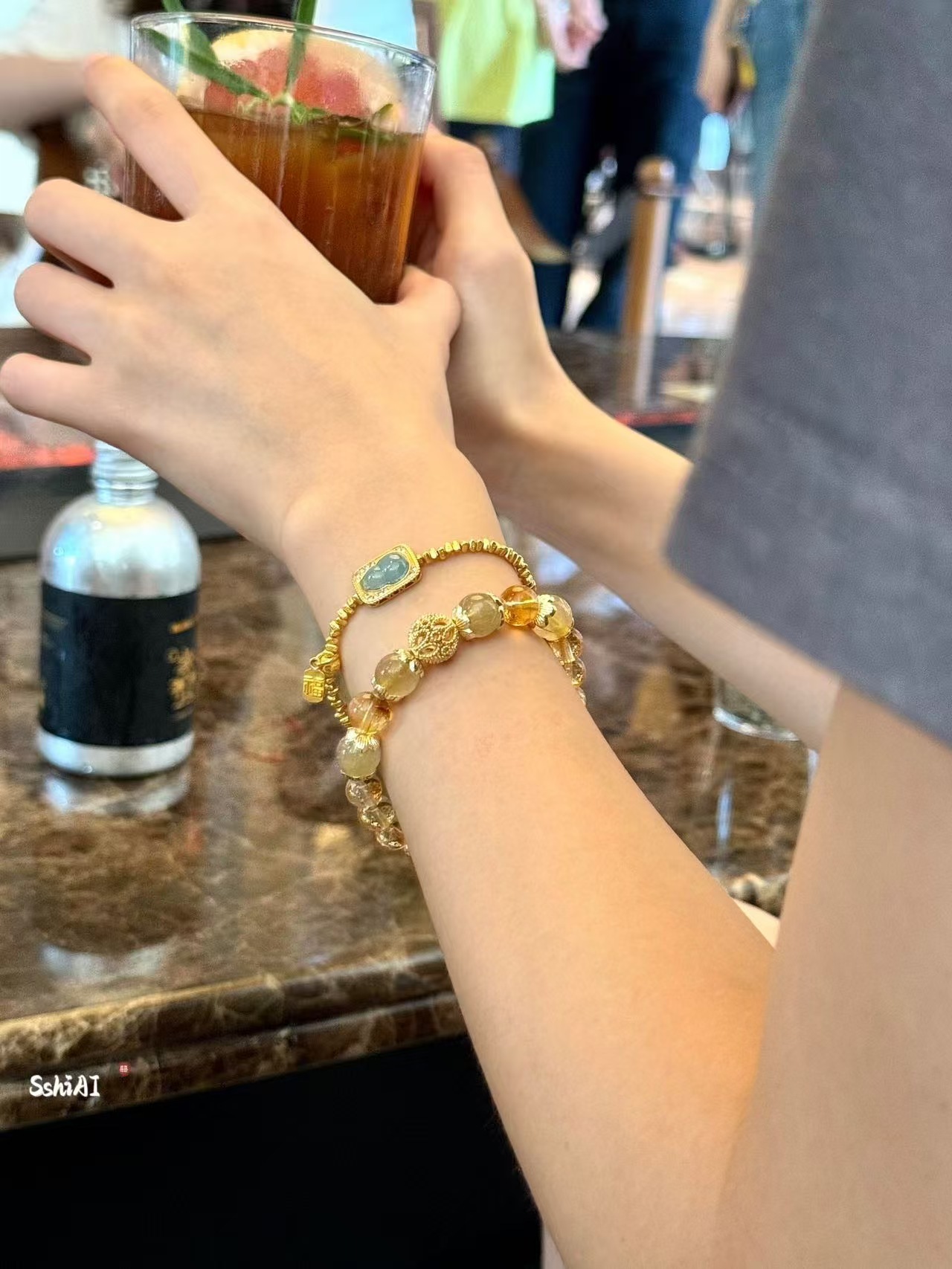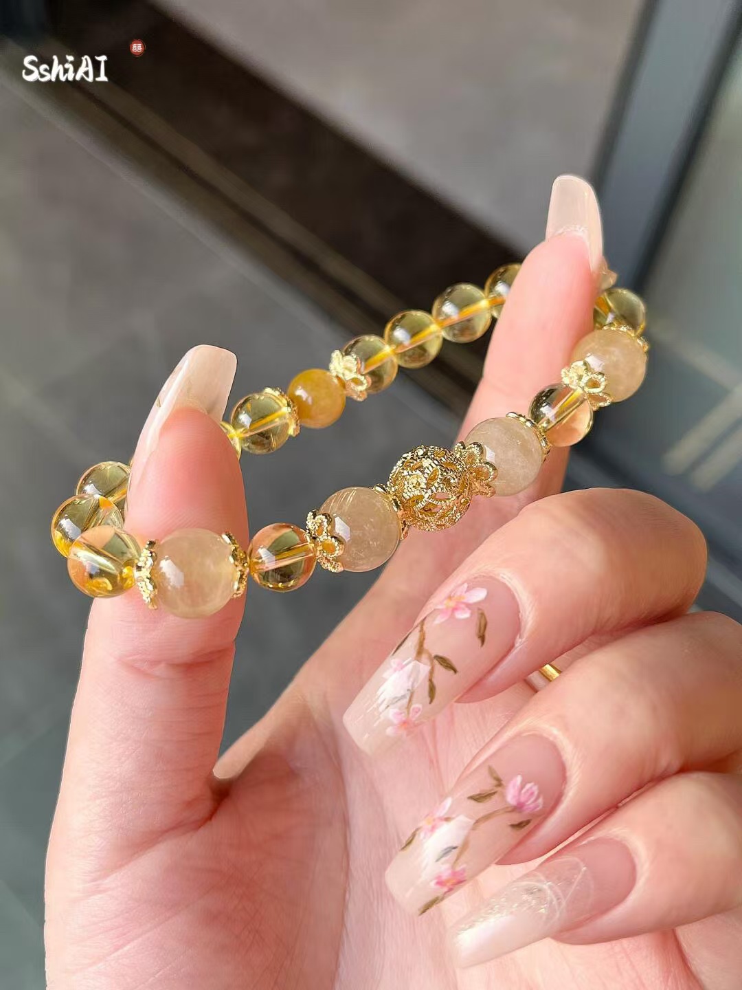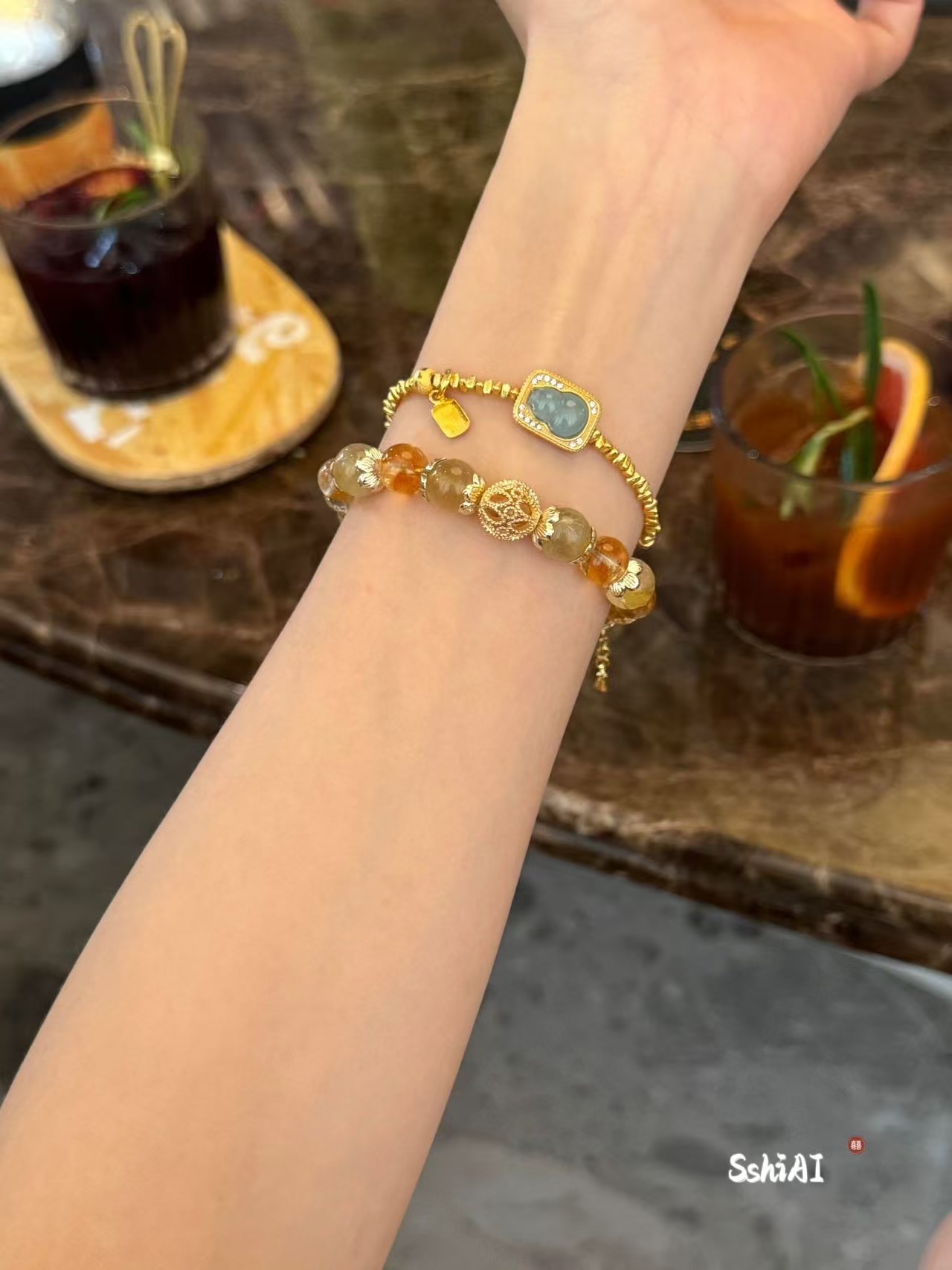偏干净清爽的一串黄水晶➕金发晶~贵气满满~