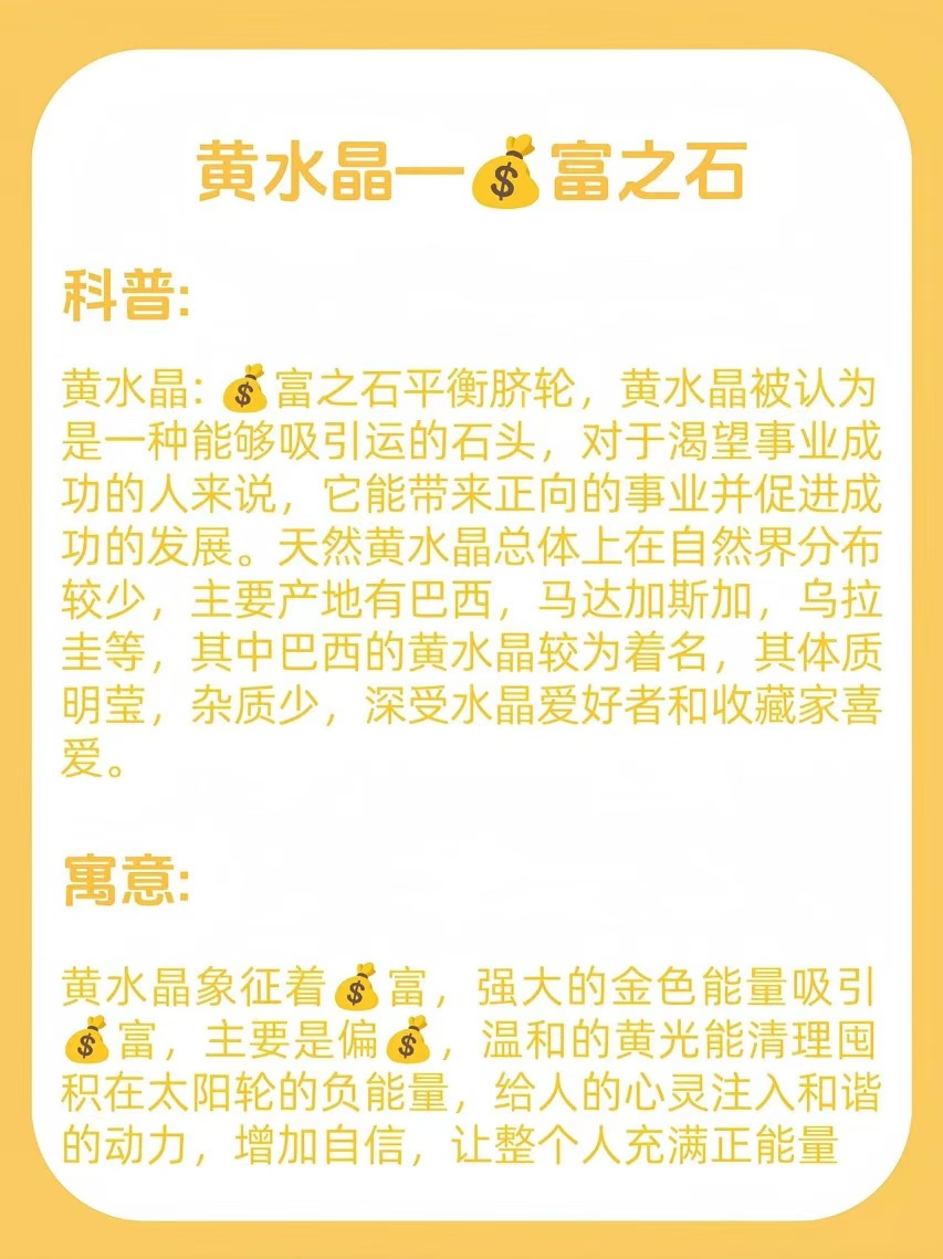 ·黄水晶也象征着友谊,有助于加强人与人之间的情感联系。