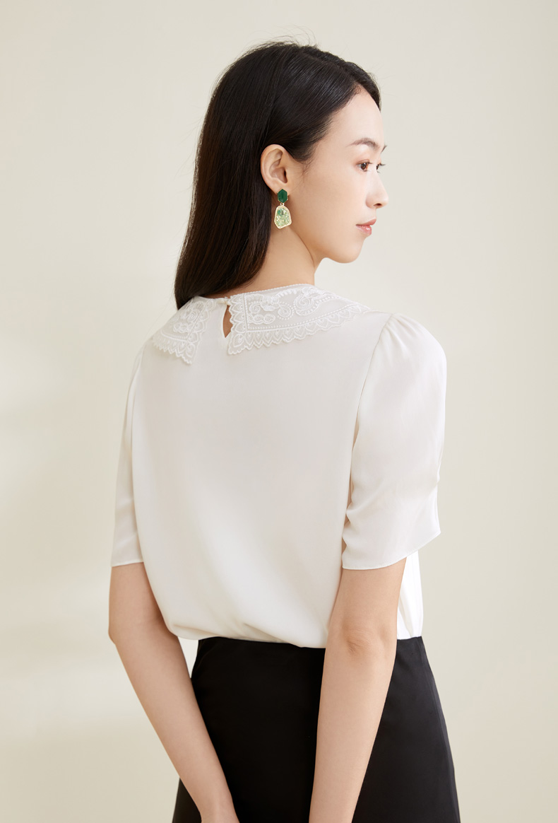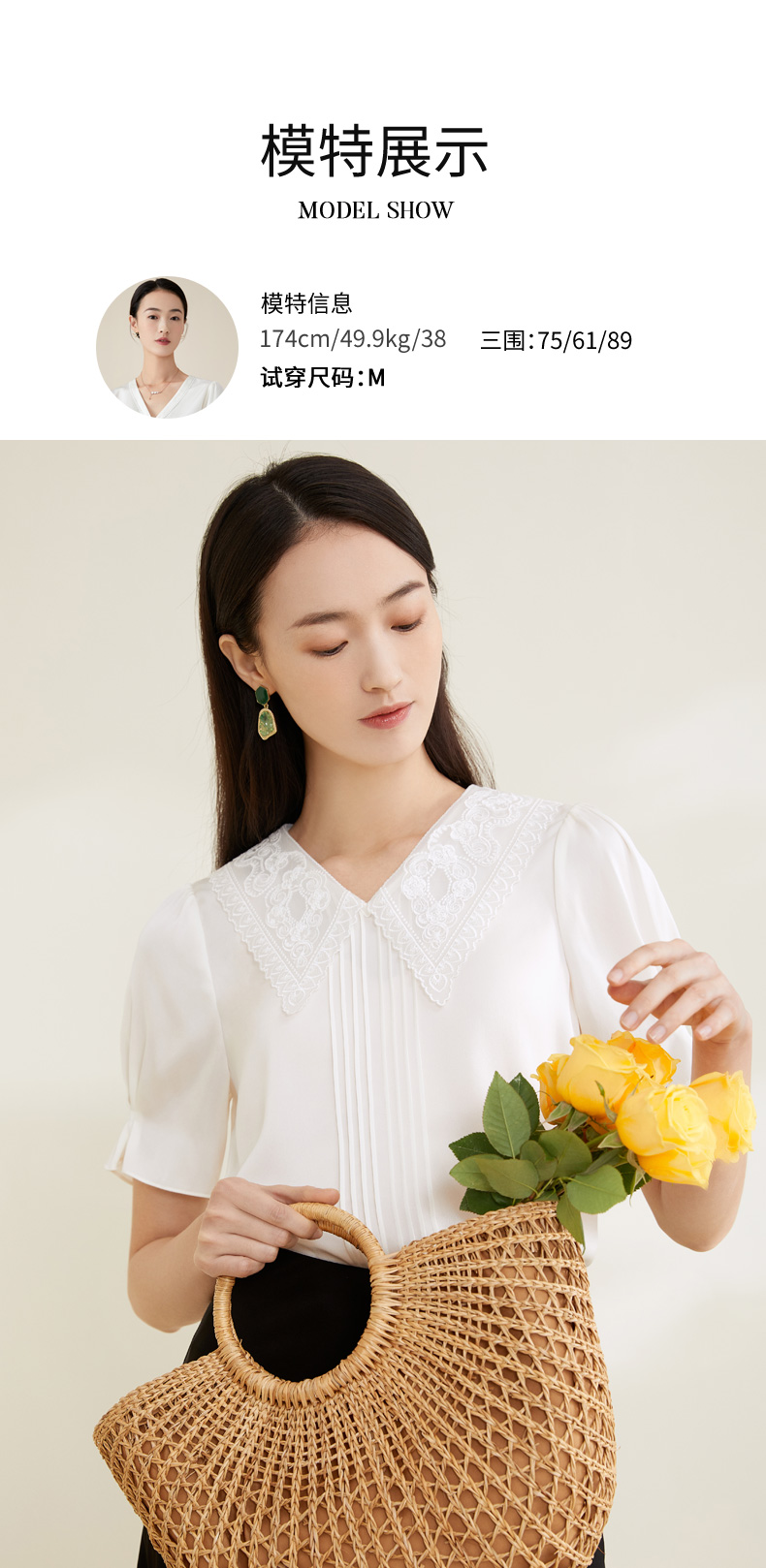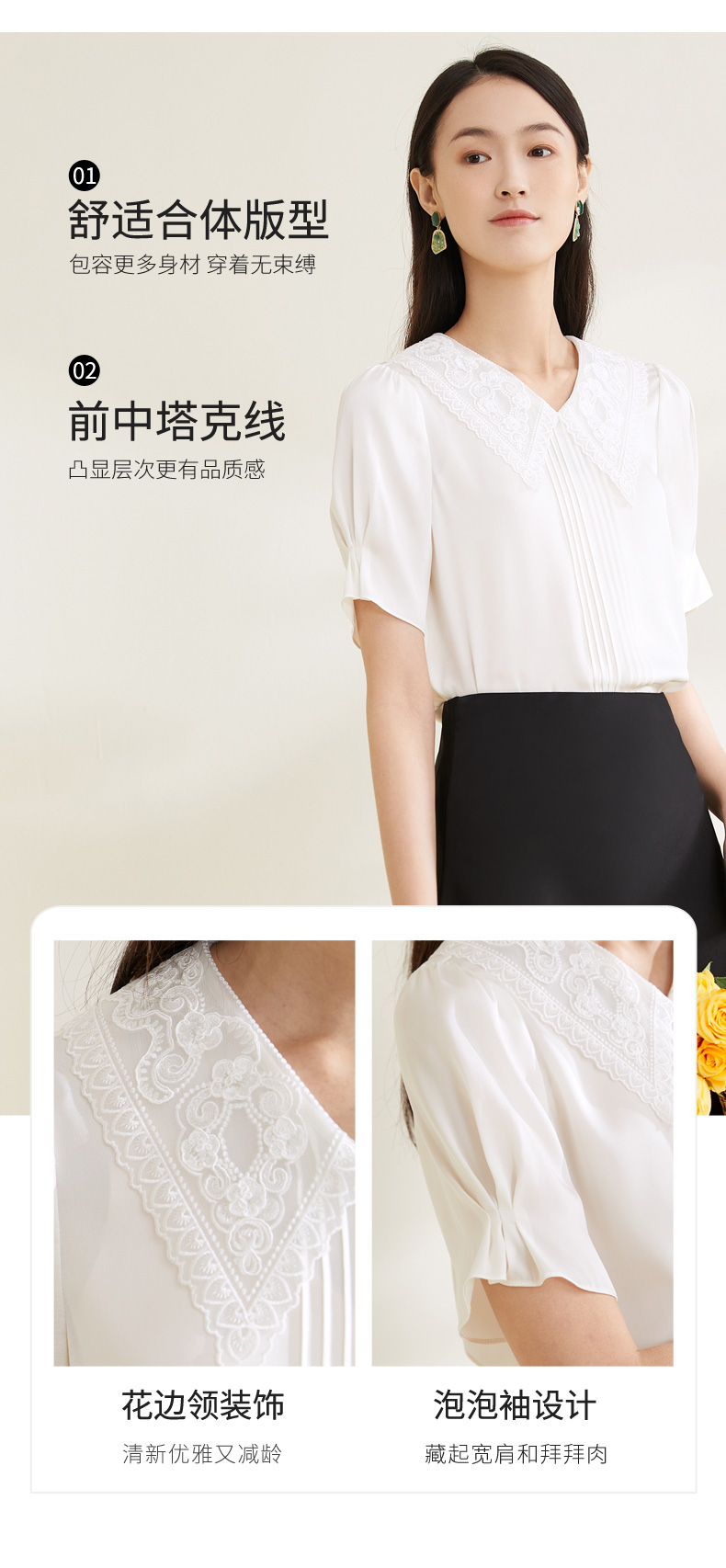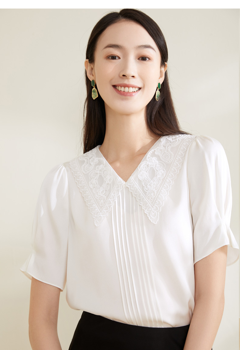 玳莎新品19mm弹力双乔绉小衫花边领 优雅温柔真丝上衣 CB31109
