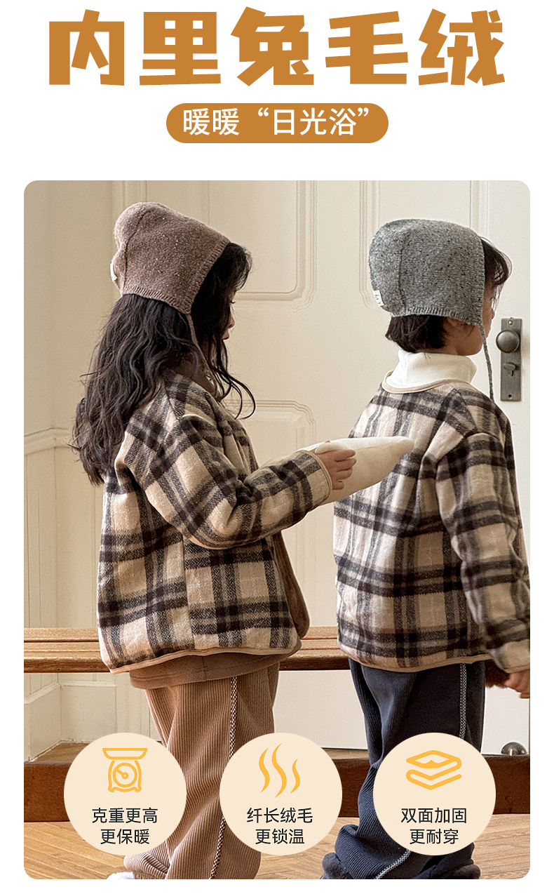 【秋冬必备,巨暖兔毛绒】秋冬季新款儿童兔毛绒棉袄韩系男女童加厚保暖大衣中大童百搭外套100%