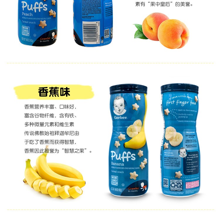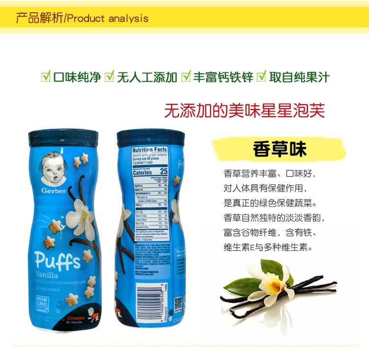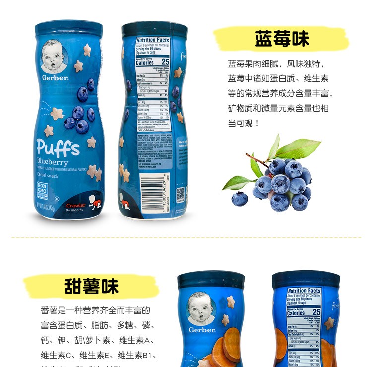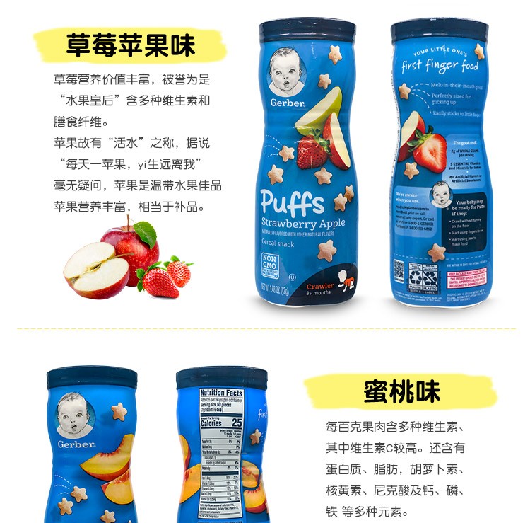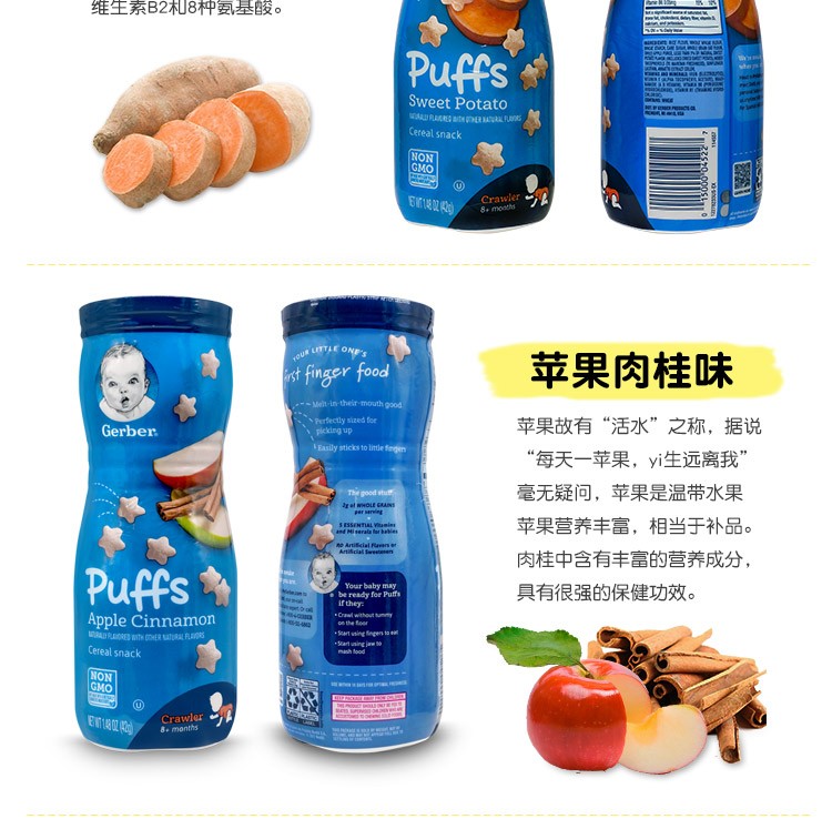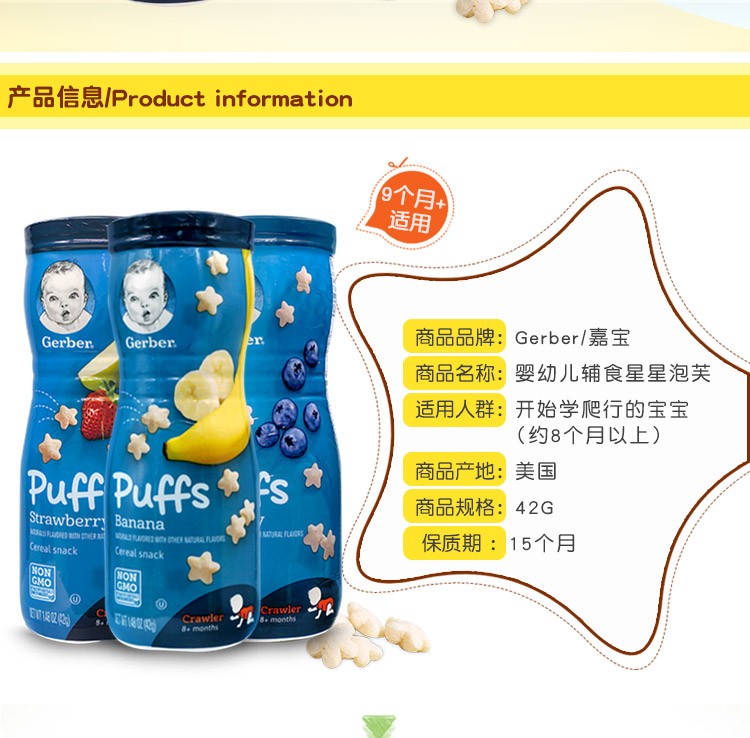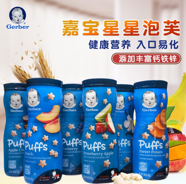 【2罐装】一般贸易进口美国嘉宝Gerber婴幼儿辅食星星泡芙 42g
