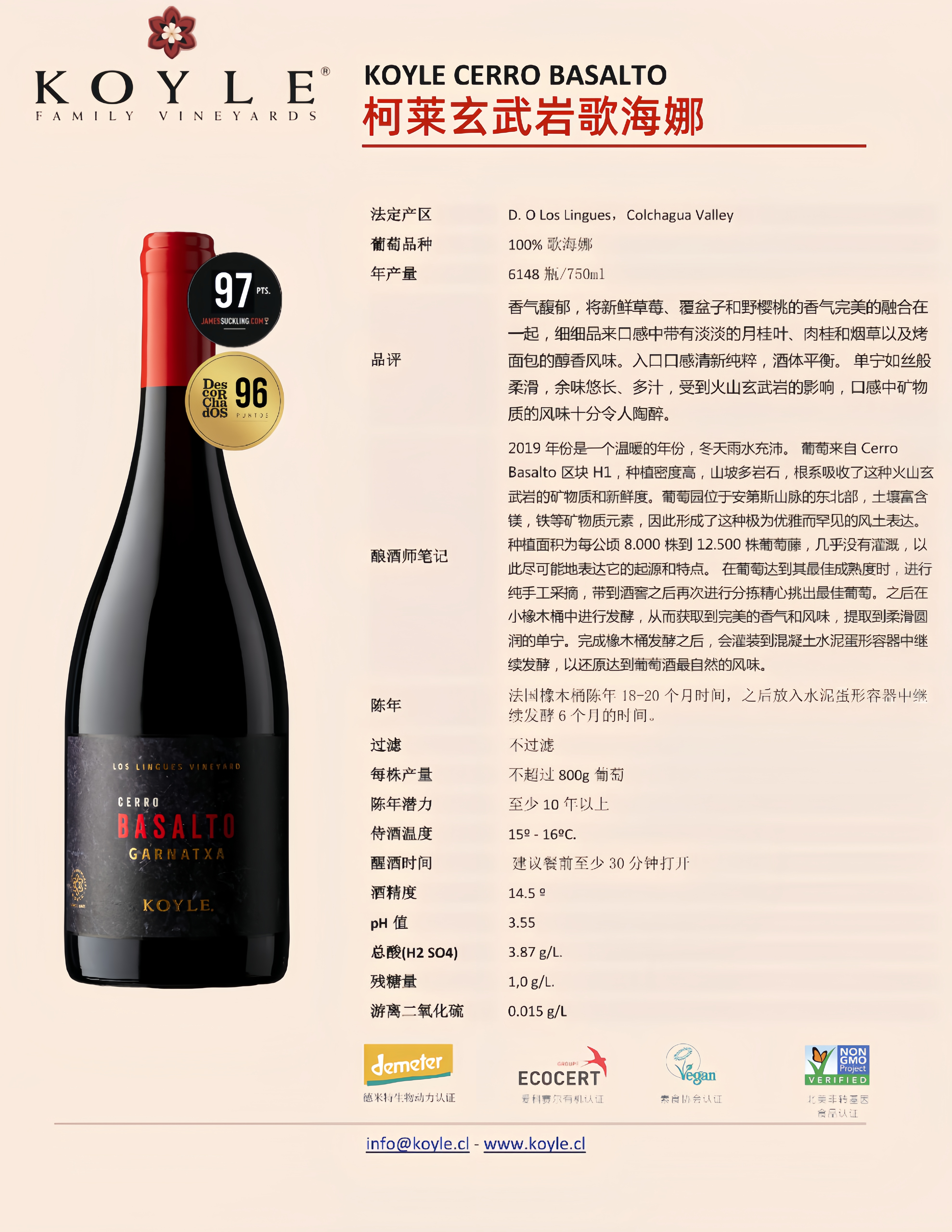 柯莱玄武岩歌海娜干红葡萄酒
