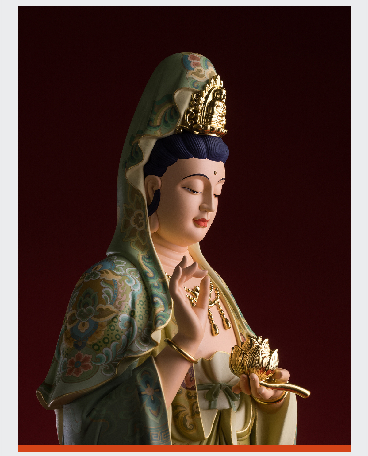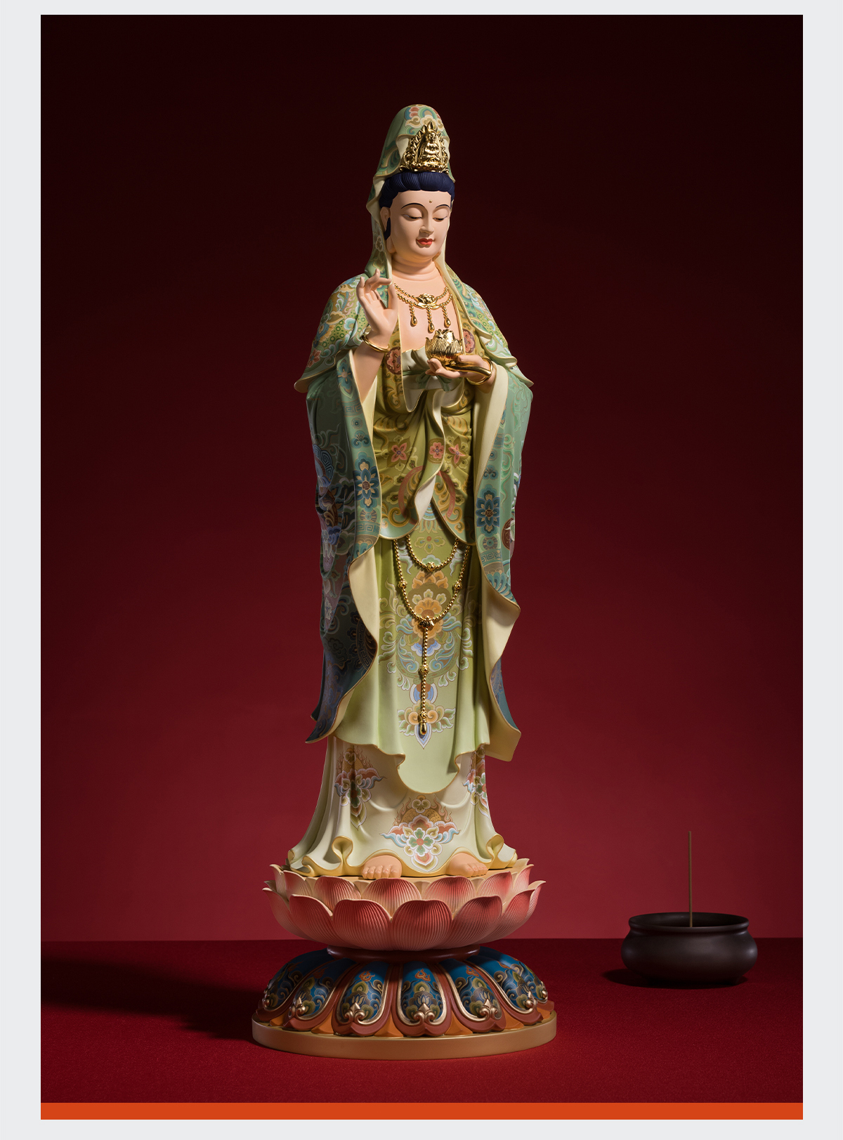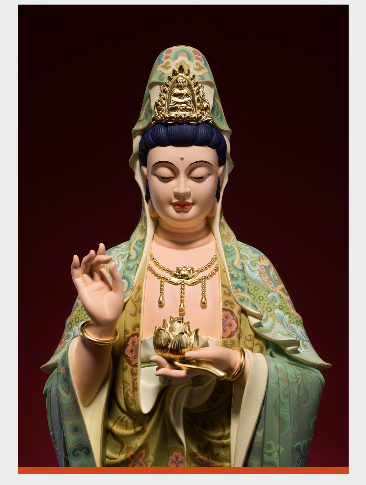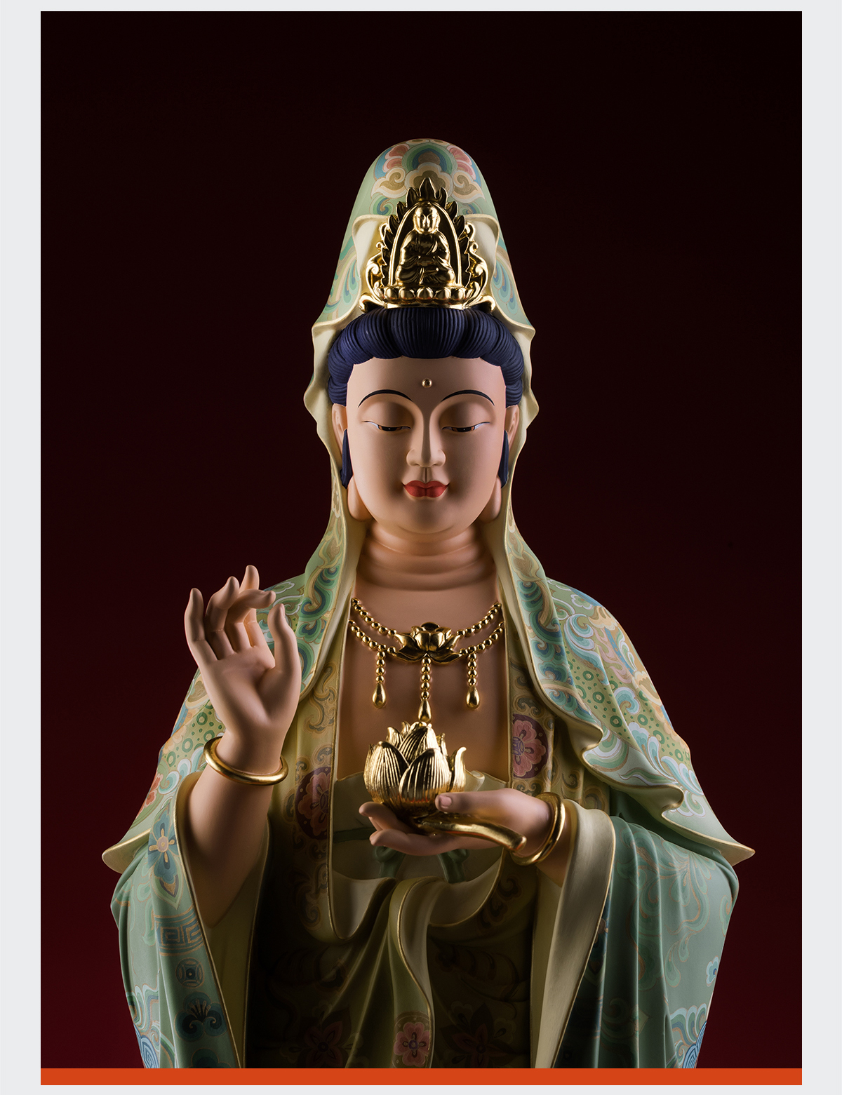 太铜《持莲观音》客厅桌面铜观音摆件 家居工艺品摆件