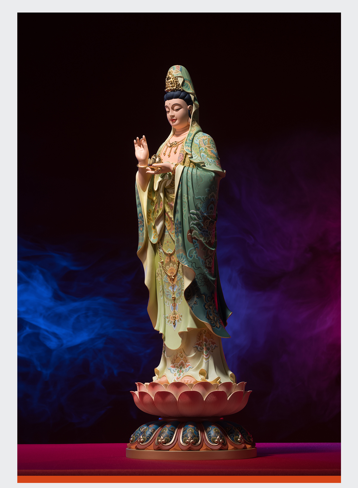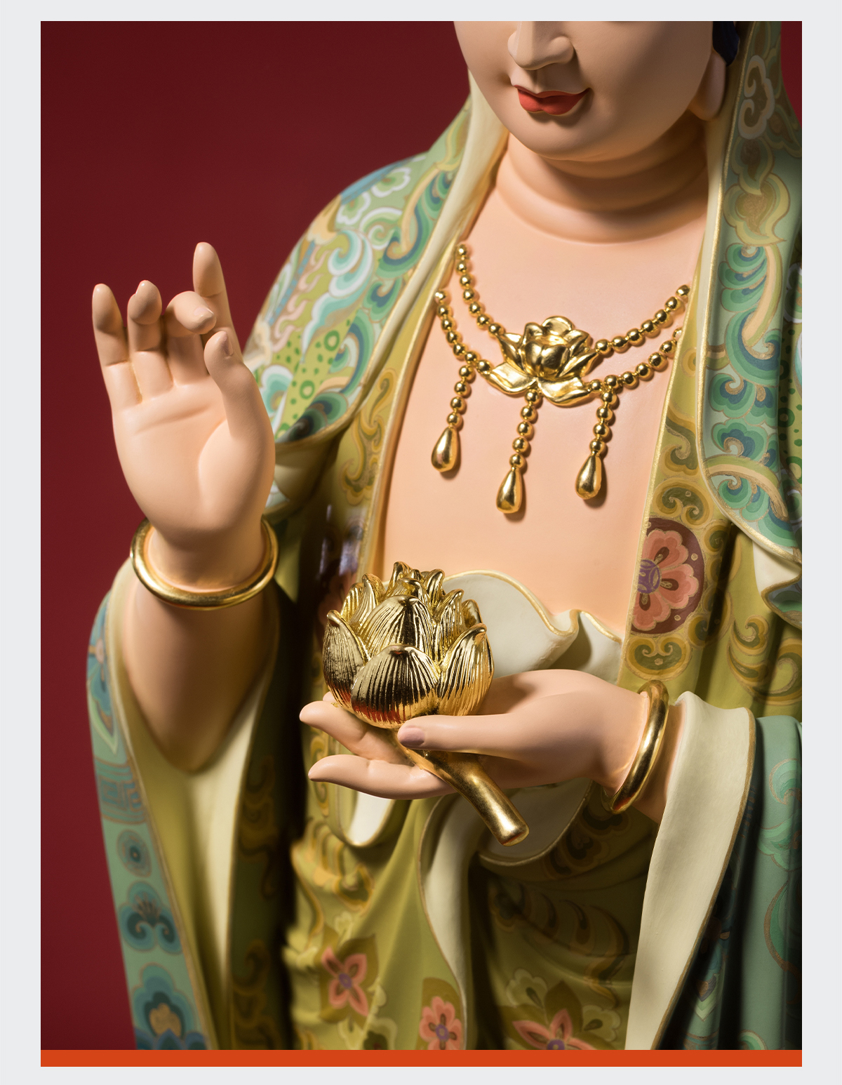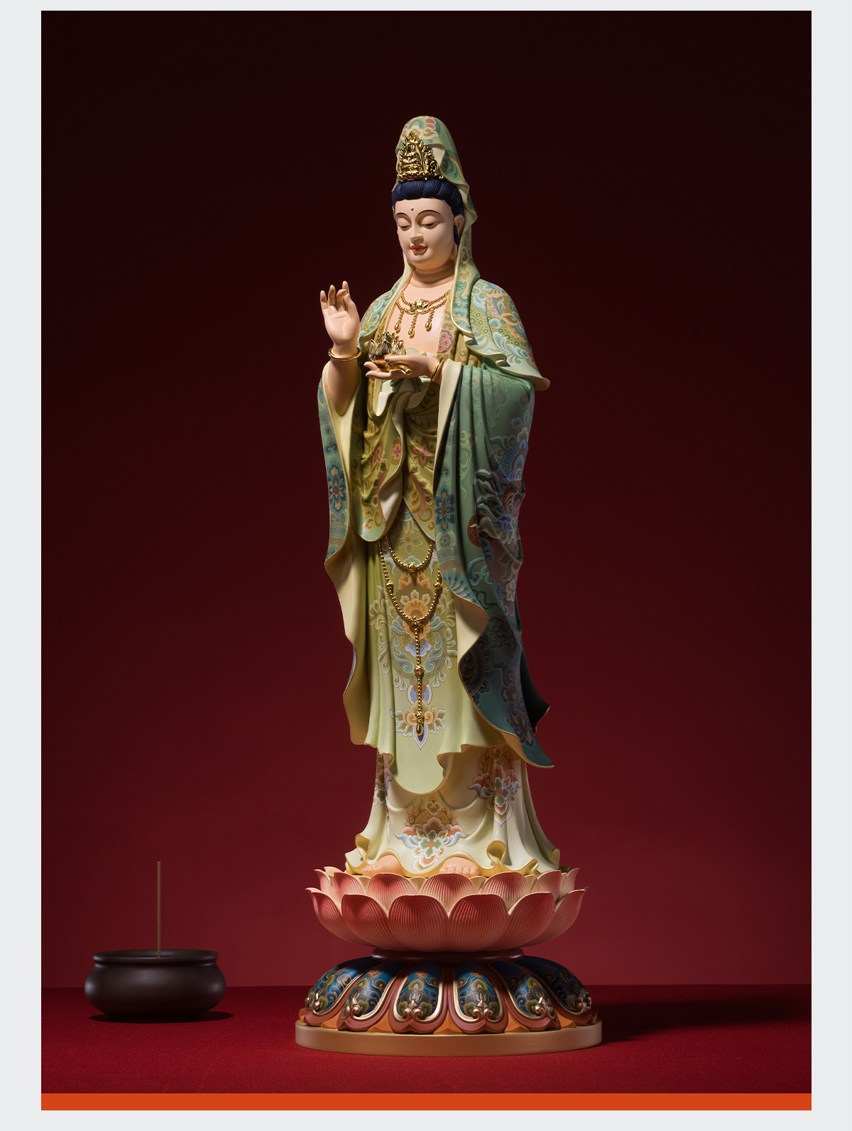 太铜《持莲观音》客厅桌面铜观音摆件 家居工艺品摆件