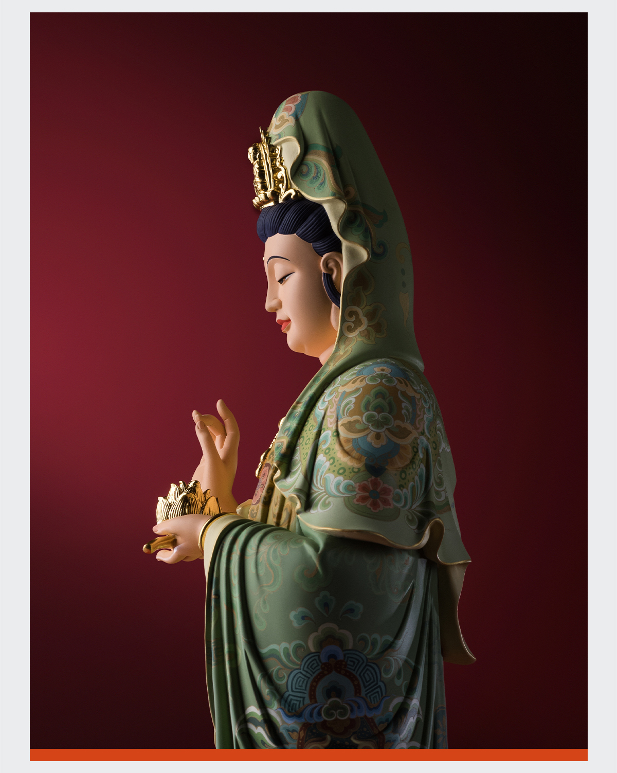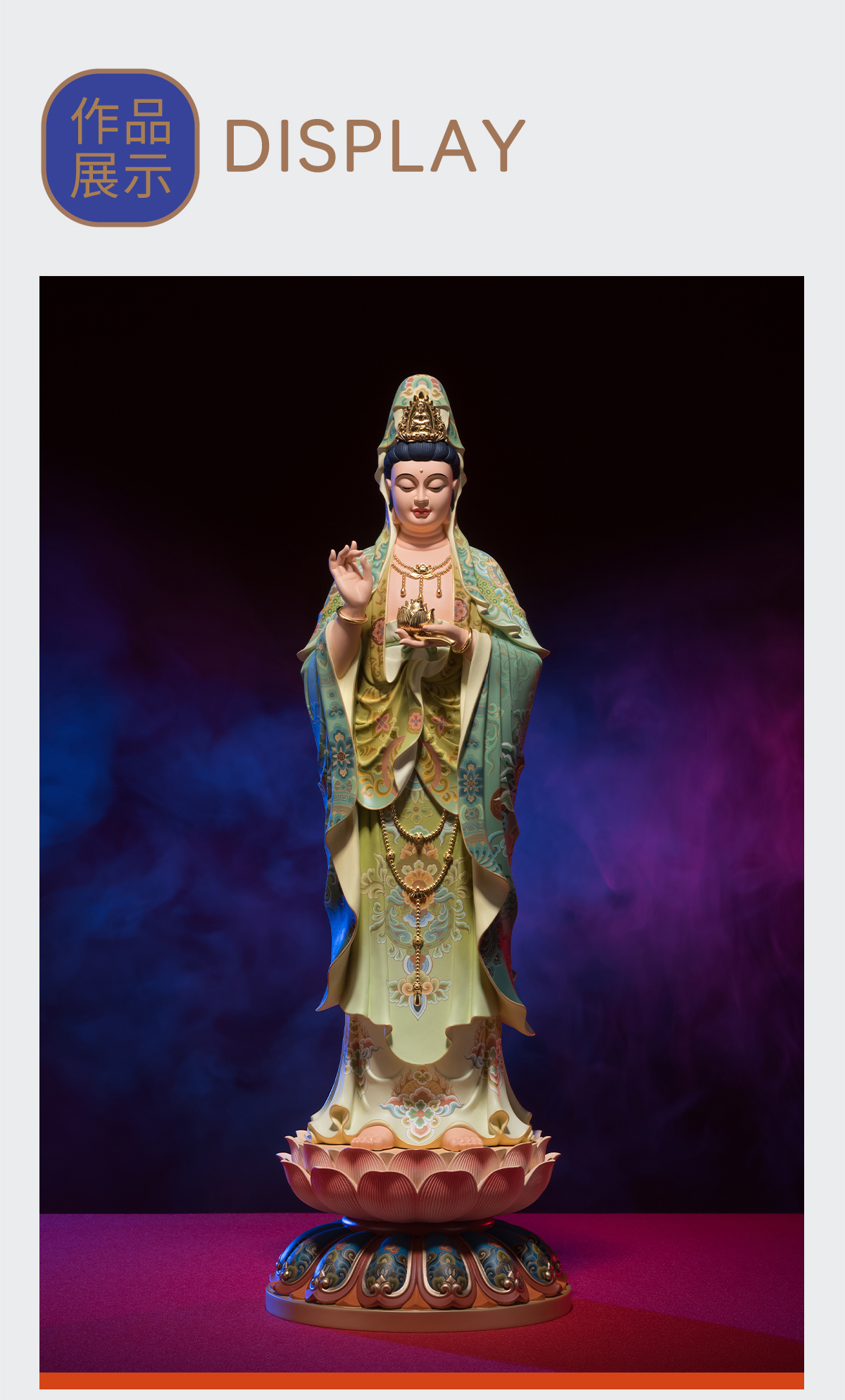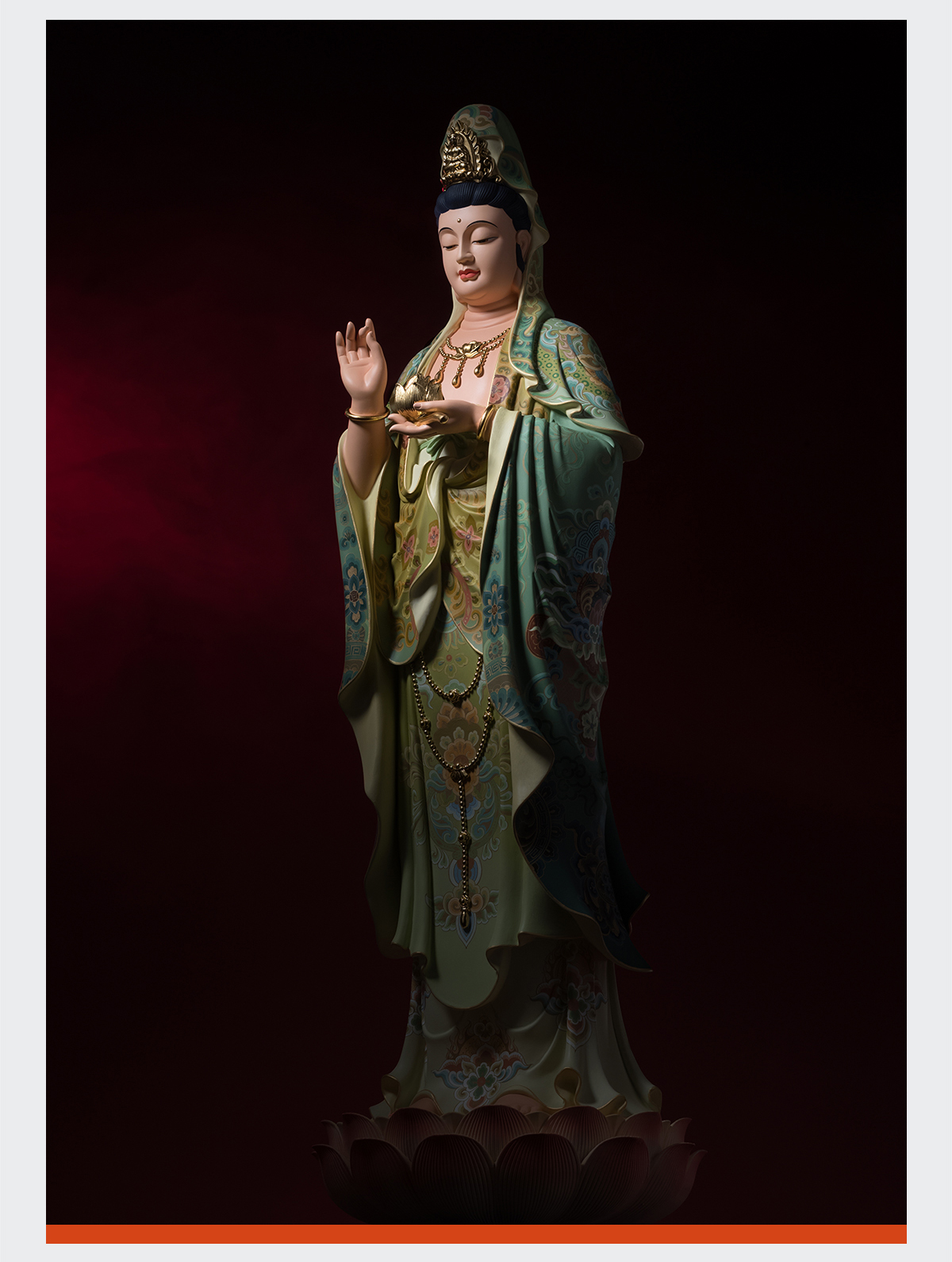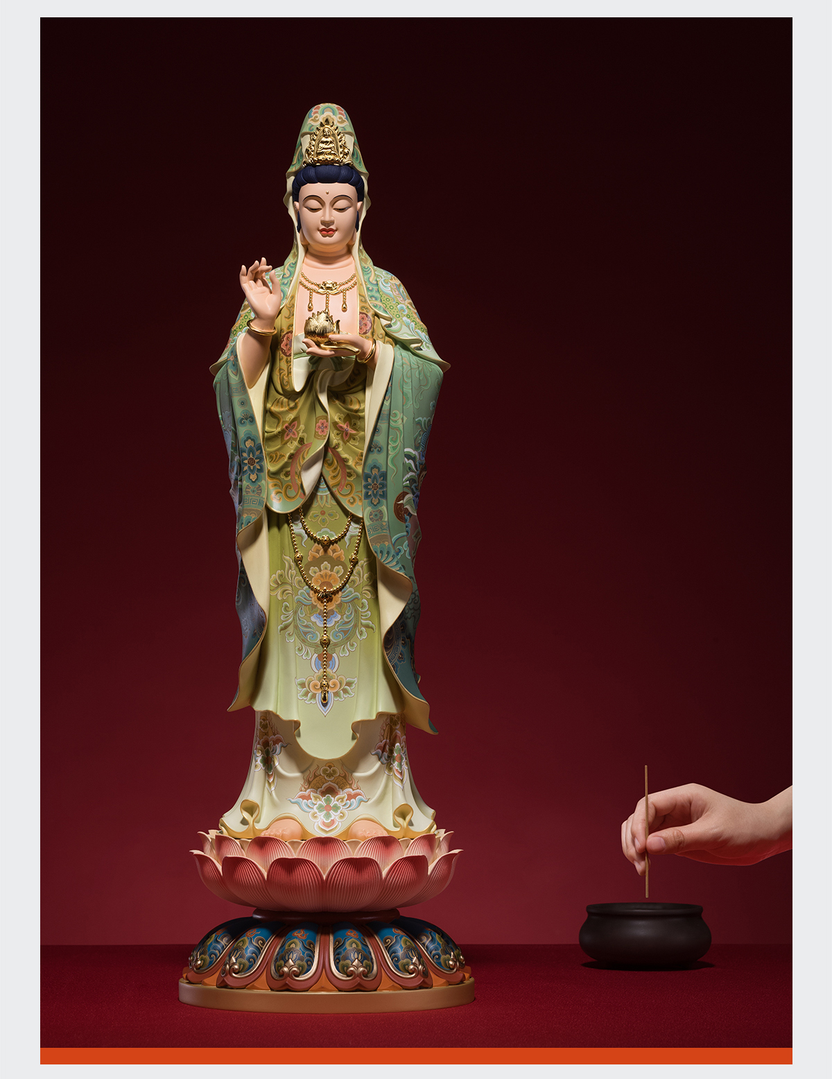 太铜《持莲观音》客厅桌面铜观音摆件 家居工艺品摆件