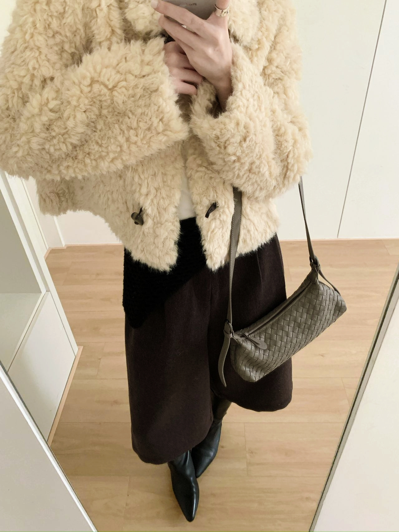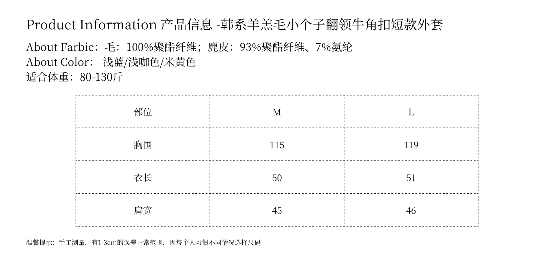 [特价]韩系羊羔毛小个子翻领牛角扣短款外套 2509068