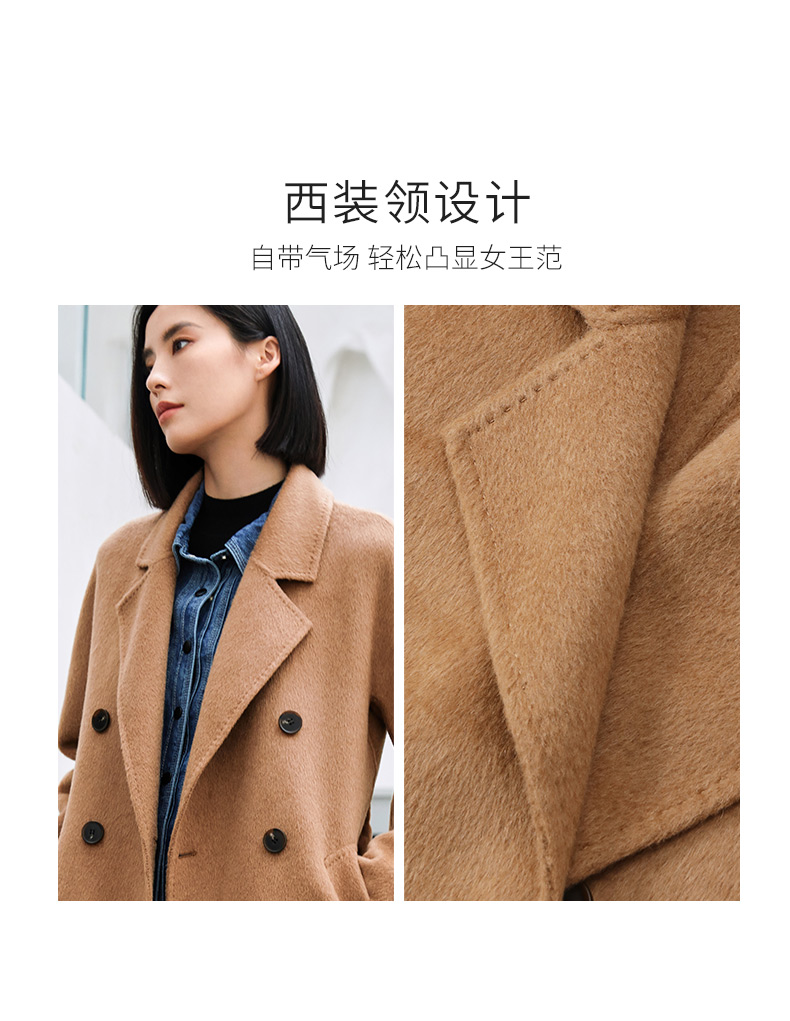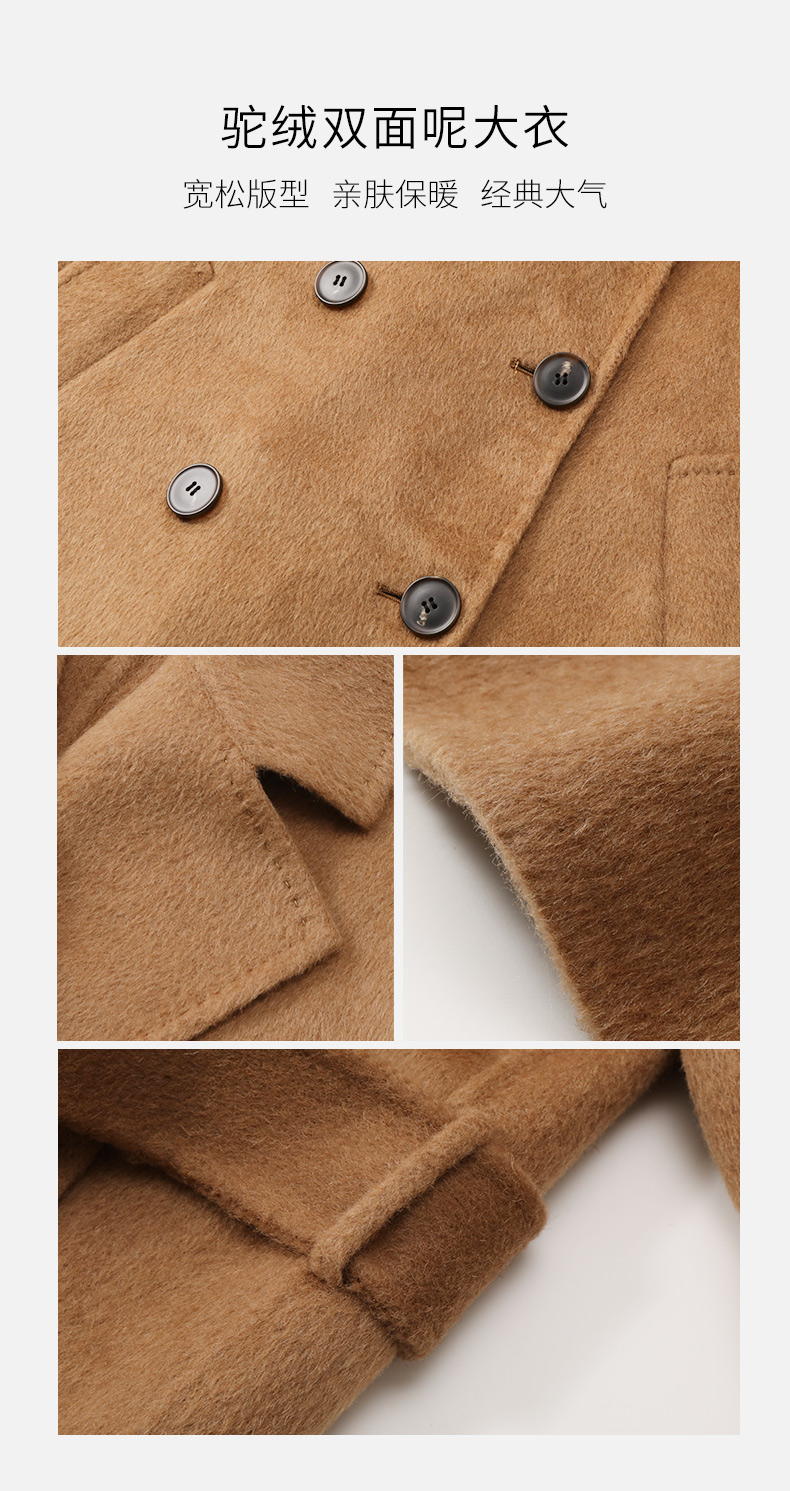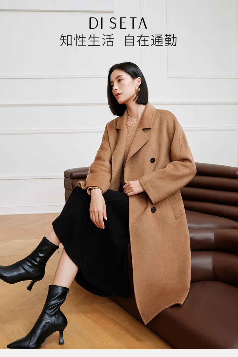 玳莎高端驼绒双面呢大衣女2023年冬季新款气质收腰中长款毛呢外套 DD39309