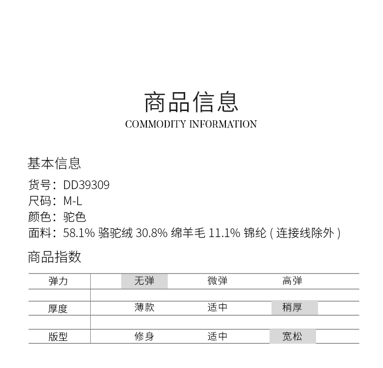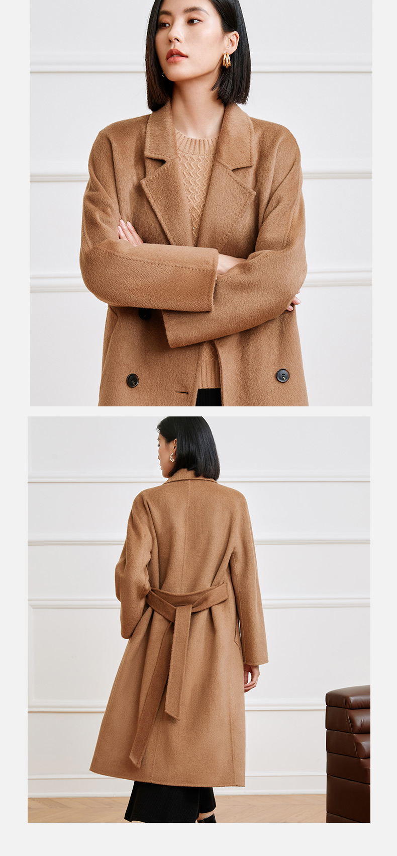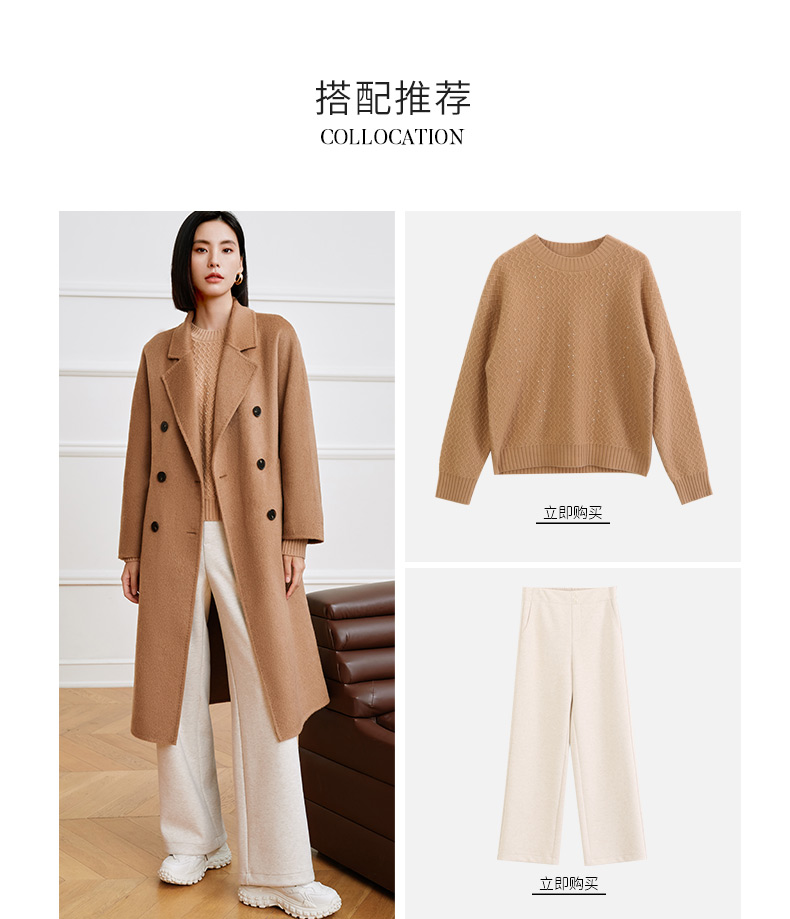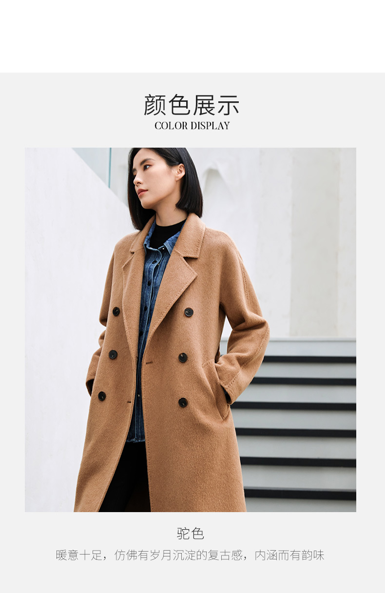 玳莎高端驼绒双面呢大衣女2023年冬季新款气质收腰中长款毛呢外套 DD39309