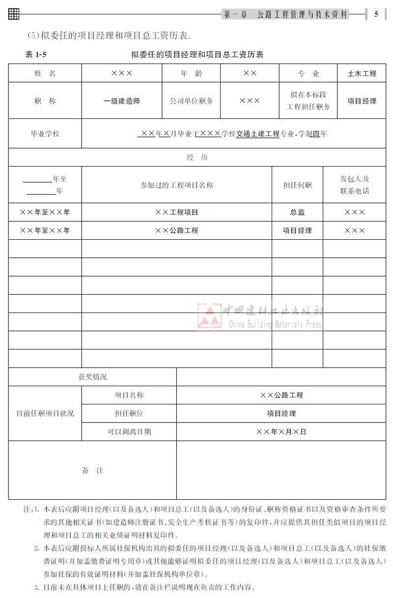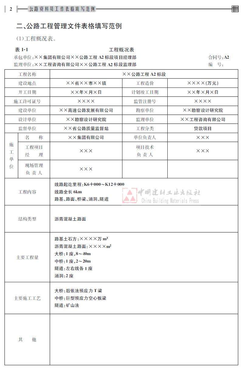 二、公路工程管理文件表格填写范例