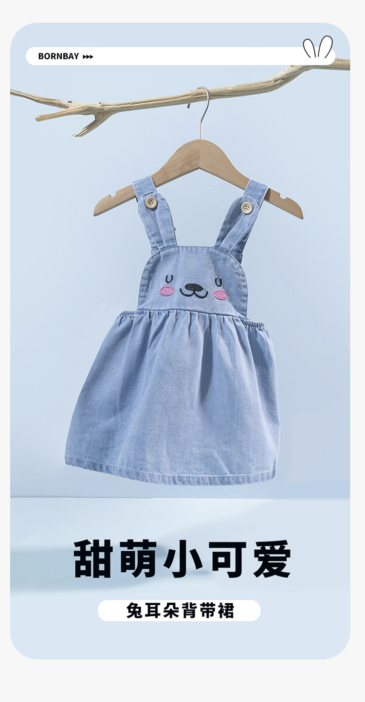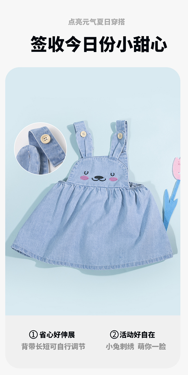 贝贝怡女宝宝兔子背带裙夏季新款儿童洋气背带连衣裙女孩甜美裙子