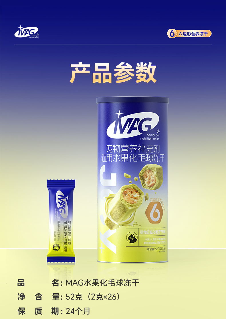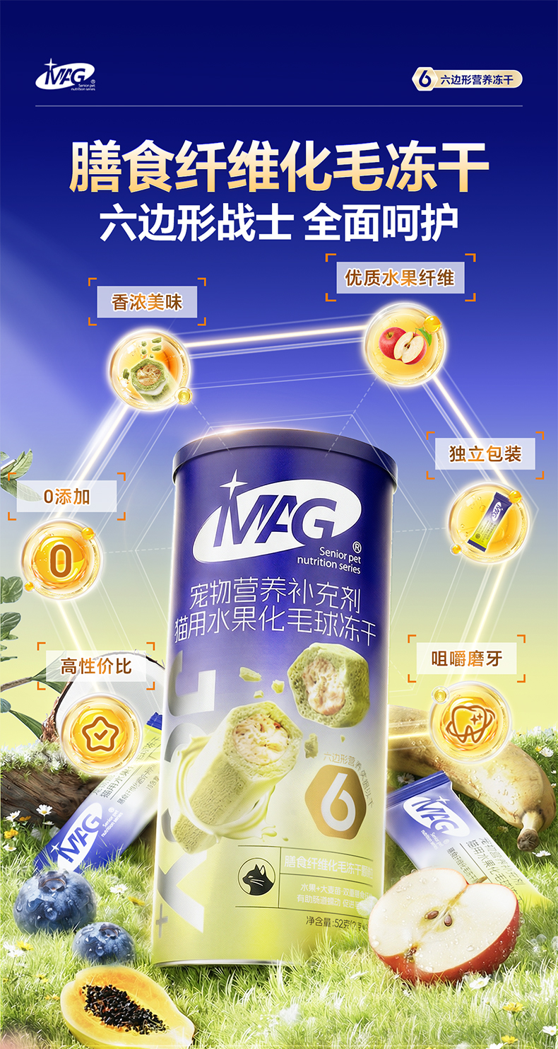 MAG膳食纤维化毛冻干-水果提取膳食纤维温和化毛排毛冻干52g