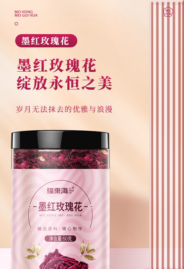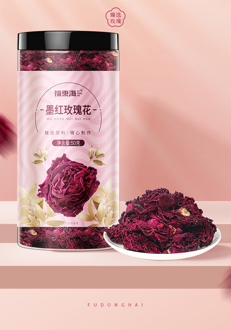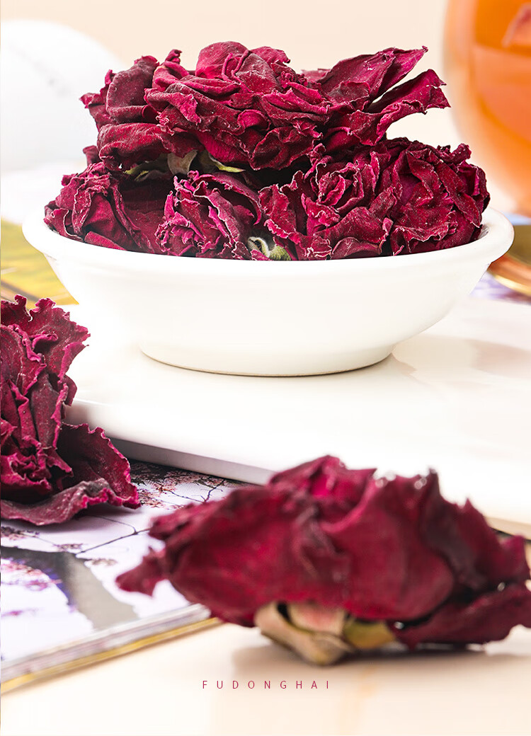 福东海 墨红玫瑰花50克茶 墨红玫瑰特级大朵云南重瓣玫瑰花冠干玫瑰罐装