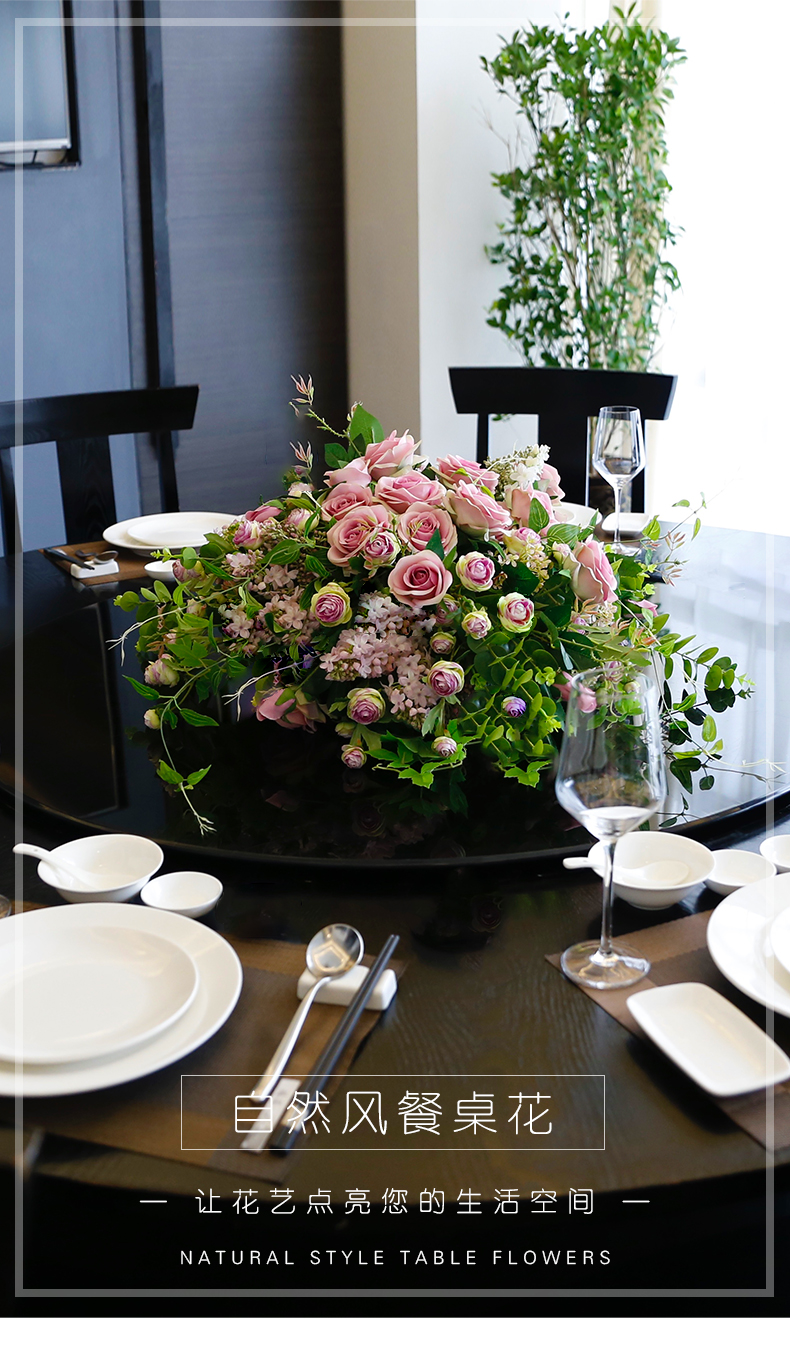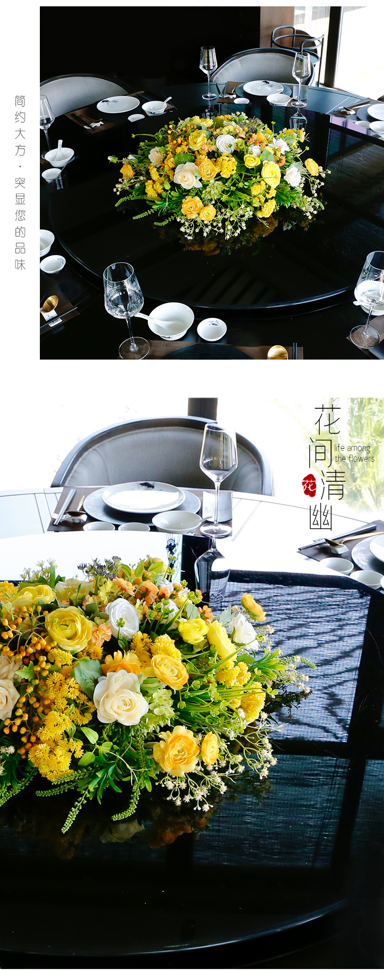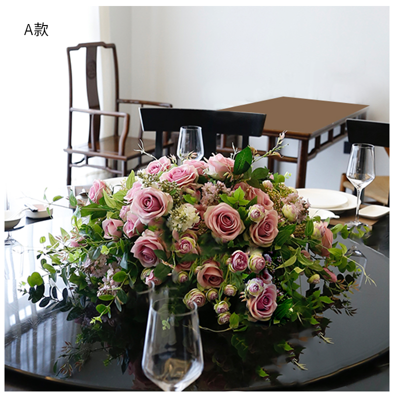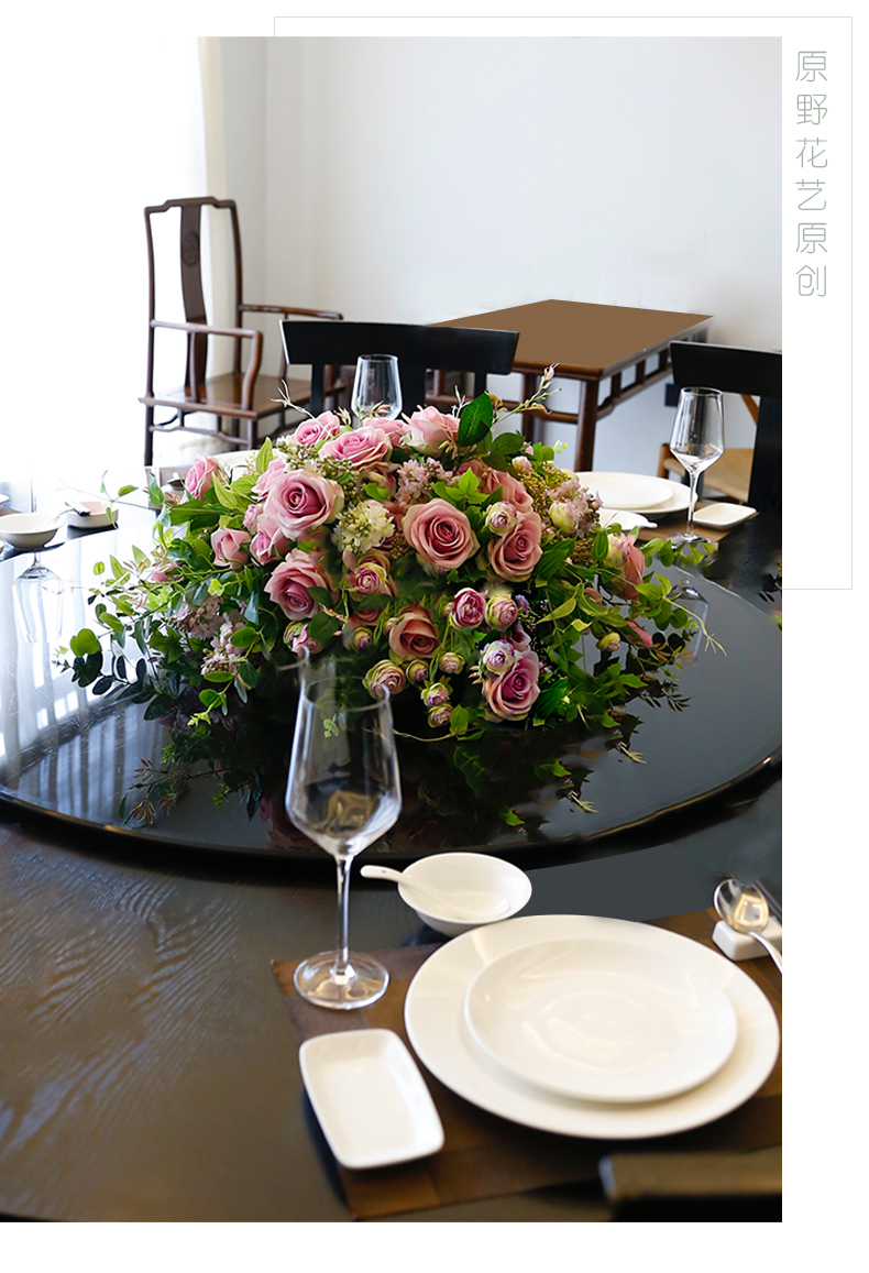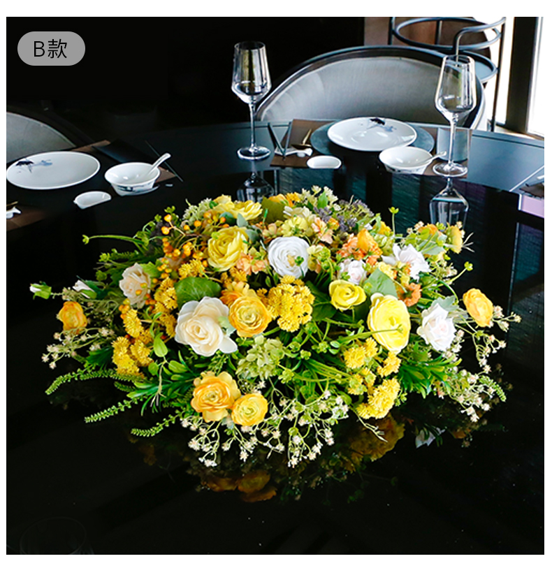 酒店餐桌花大圆桌中间转盘摆花饭店餐厅包厢高端仿真花装饰花摆设