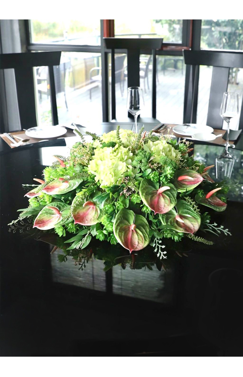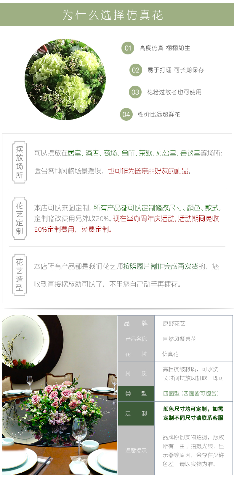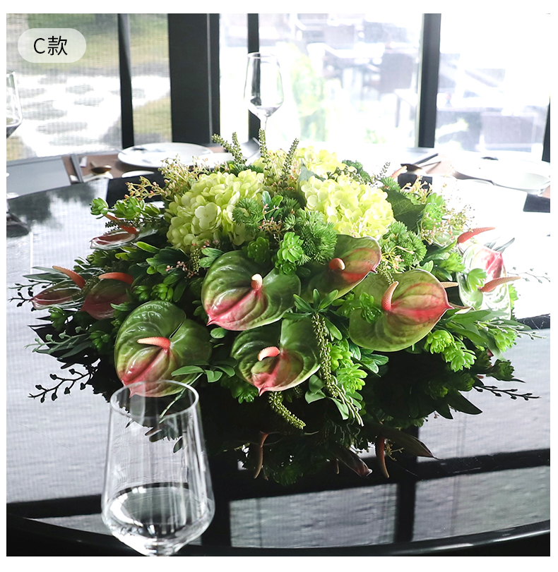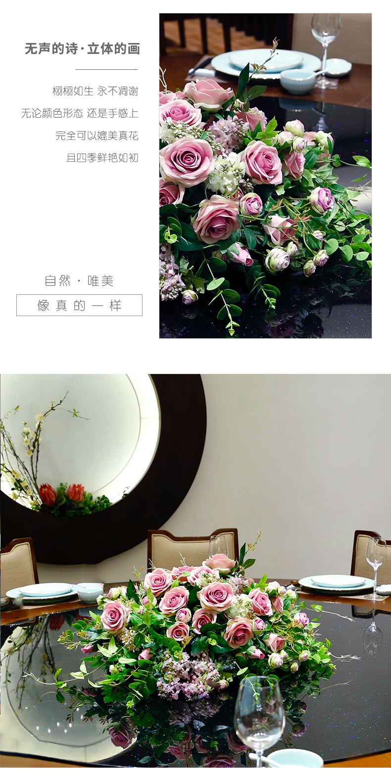 酒店餐桌花大圆桌中间转盘摆花饭店餐厅包厢高端仿真花装饰花摆设