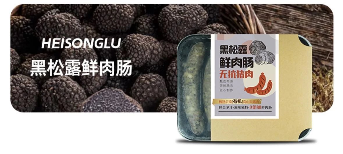 配料:有机怒江黑猪肉(大于90%),黑松露,羊肠衣,食用盐,白砂糖,纯草本香料,酵母提取物