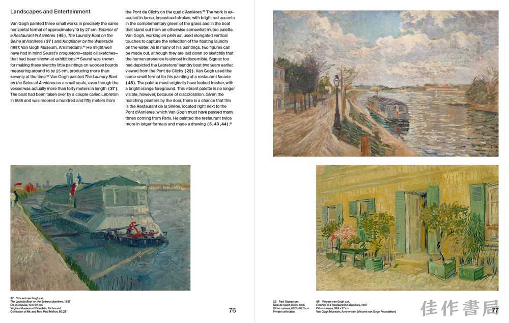 1881年至1890年间,文森特·梵高、乔治·修拉、保罗·西涅克、埃米尔·伯纳德和查尔斯·安格兰选择了巴黎郊区阿斯尼埃尔作为艺术实验之地。阿斯尼埃尔位于塞纳河畔,自19世纪50年代起,得益于水上运动和节日活动,以及世纪早些时候新建火车站和桥梁的便利,这里成为了巴黎人的热门目的地。这一便捷的新交通系统吸引了巴黎人前往更远的地方,如阿尔让特伊和布吉瓦尔,从而催生了莫奈和雷诺阿等印象派画家所描绘的河景画作。与此同时,阿斯尼埃尔那如画的风景与河对岸日益增多的工厂形成了鲜明对比。聚焦于休闲与工作之间的紧张关系,阿斯尼埃尔的先锋艺术家们通过开发创新的主题、风格和技术,推动他们的作品向新的方向发展,力求捕捉这一鲜明现代景观的感受。这本图文并茂的著作以前所未有的深度展现了阿斯尼埃尔艺术家们的作品,其中包括关于每位艺术家的学术论文,以及一张详细标注了艺术家们作画地点的地图。