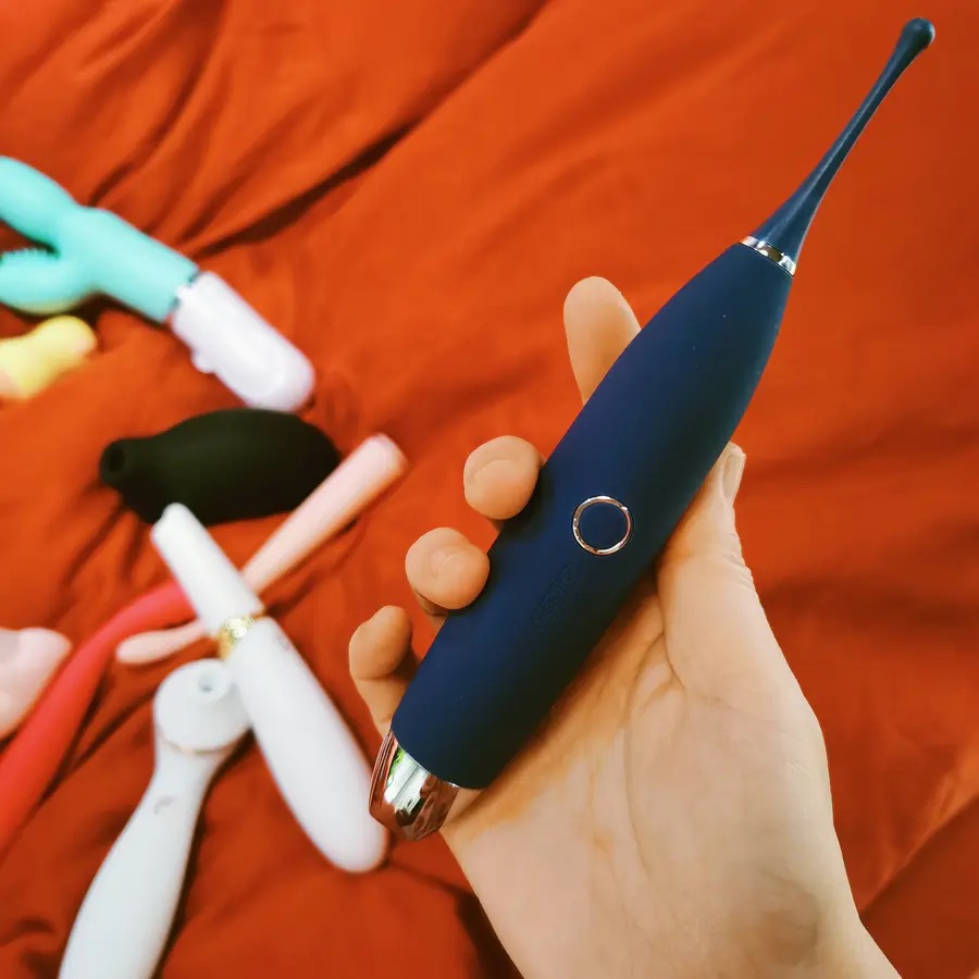 点点的这支是Kiss Toy的C-king系列,单看上去有点像采耳棒,本来觉得应该不太行,我留的又是个蓝色,很冷感。但没想到,有点爽。它用的是WhirlWind 3D全立体旋风震动技术,能够单点集中刺激,玩的时候能够感受到明显的刺激感。但我只能用第一档,刚刚好,再高一点我就不太行,震太厉害,痒得有点想笑,大家可以根据自身敏感接受度来选择。