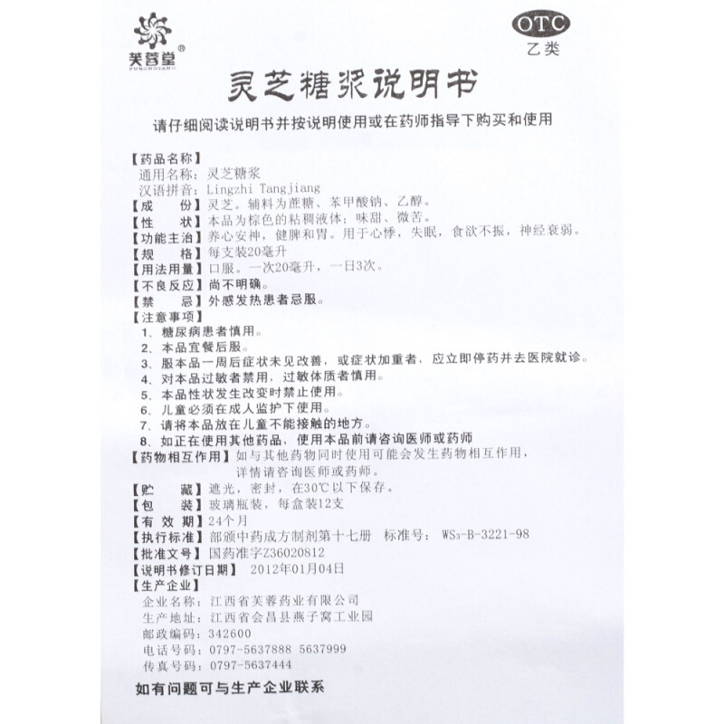芙蓉堂 灵芝糖浆12支 心悸失眠神经衰弱养心安神健脾和胃食欲不振