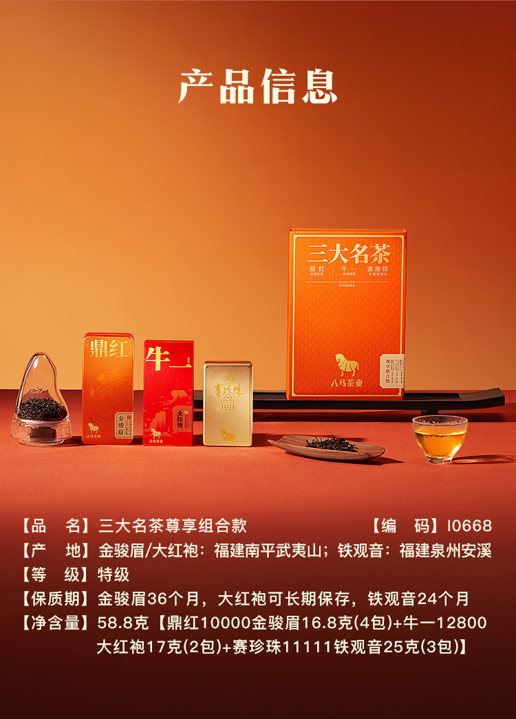 八马茶业 | 三大名茶尊享组合装武夷红茶金骏眉大红袍安溪铁观音58.8g
