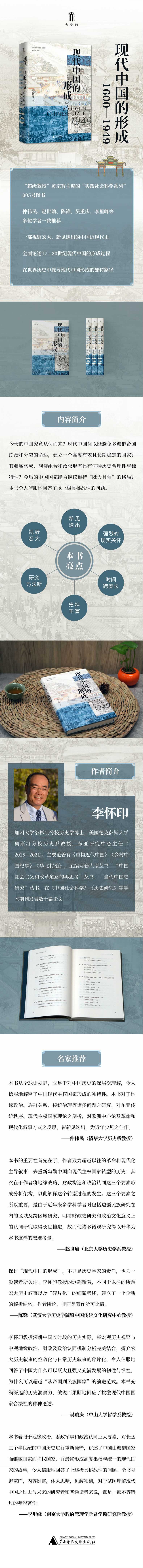 探讨“现代中国的形成”,不只是历史学家的责任,也为一般读者所关注。李怀印教授的这部新著,不同于以往的所谓宏大历史叙事以及“碎片化”的细微考述,建立了一个全新的解析结构。这种全新的解析结构虽然遵循宏观历史的研究路径,但呈现四大特色:一是紧紧围绕现代国家形成的要素——疆域(领土、边疆)、人口(族群)、政府(国家治理能li)、主权展开论述;二是重点选取地缘战略、财政构造和政治认同等关键变项进行精细而恰当的探讨,并追究诸类项之间的关系和交互影响;三是打破社会形态界限,将近三百年的中国国家——社会转型作为一个继承、变革、贯通的完整过程;四是将近世中国的国家——社会转型置于世界全史的视域下加以认识和照察。作者所论,非同类著作所可比肩。