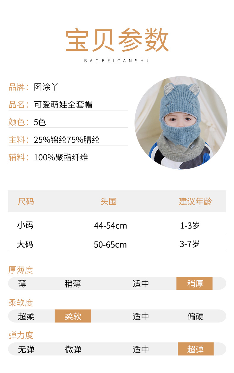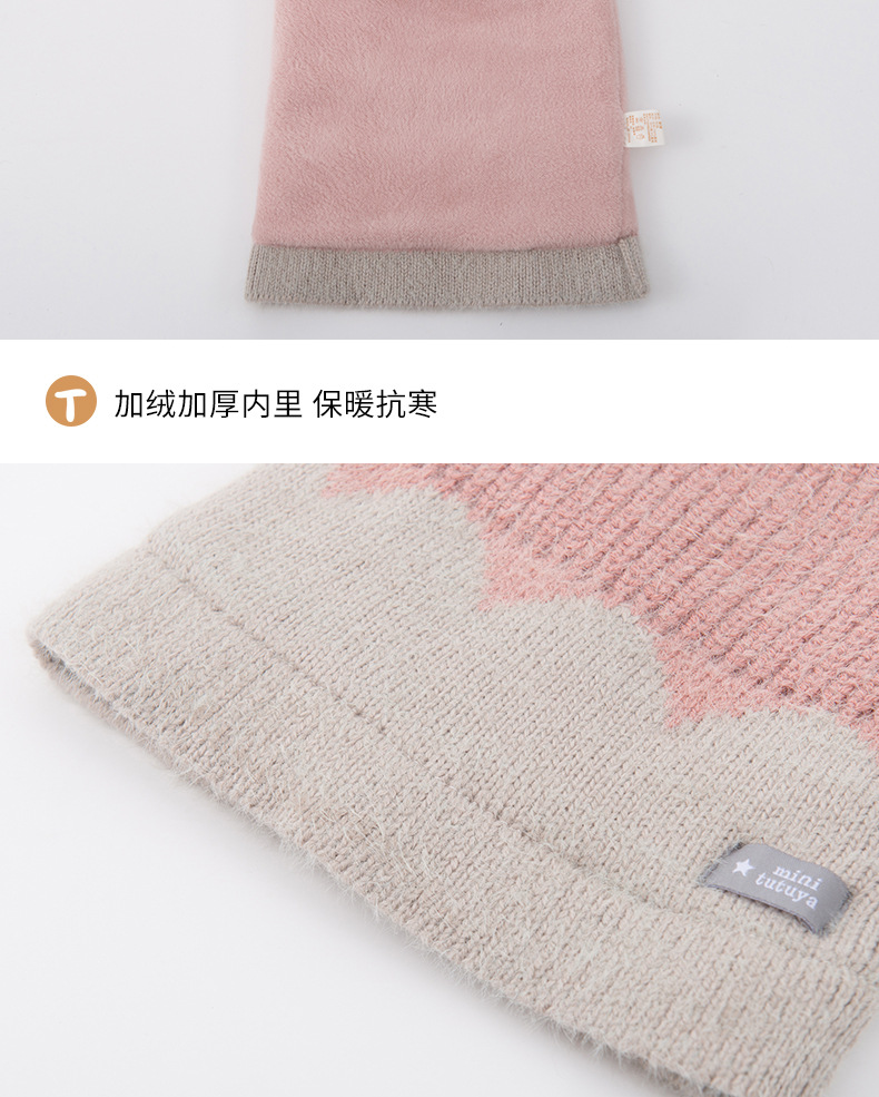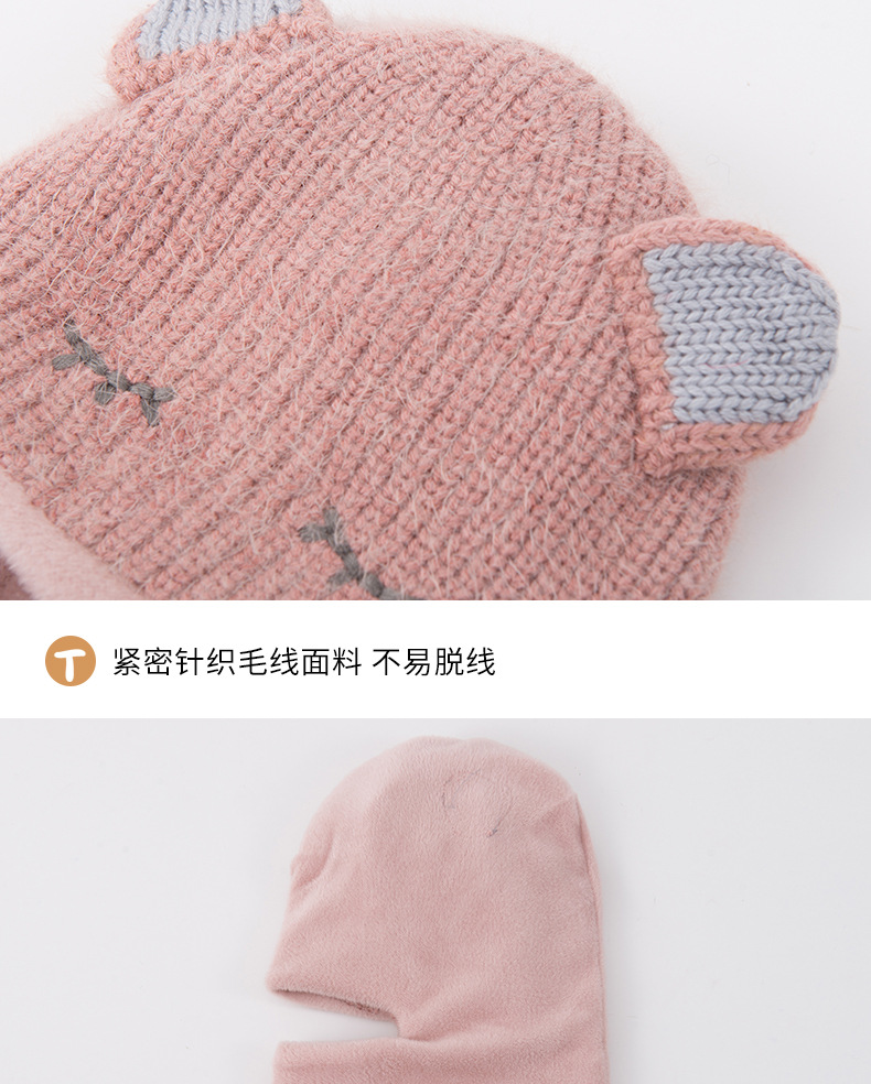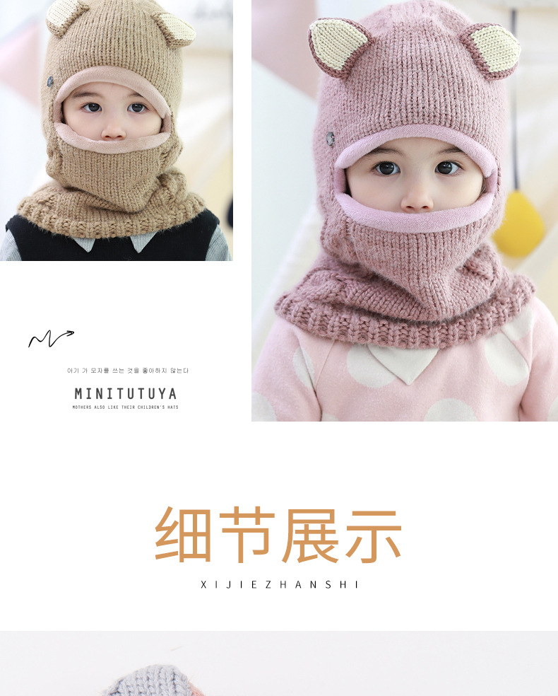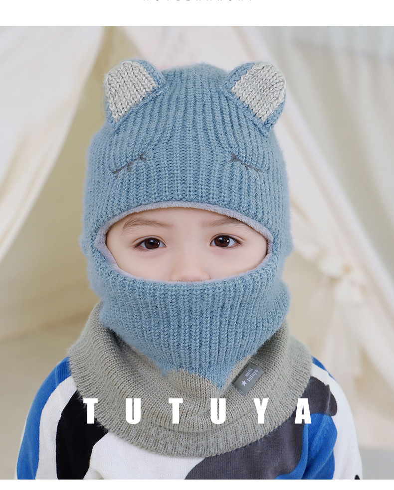 图涂丫儿童帽子秋冬季护耳针织帽男女围脖一体加绒保暖连体帽