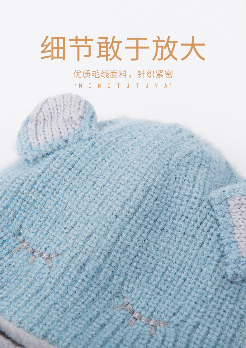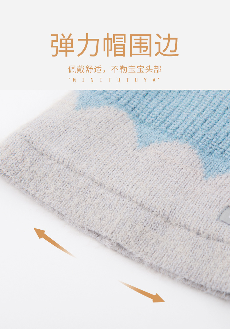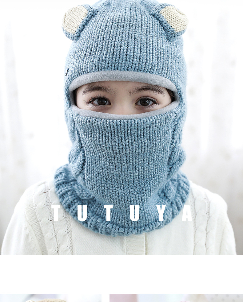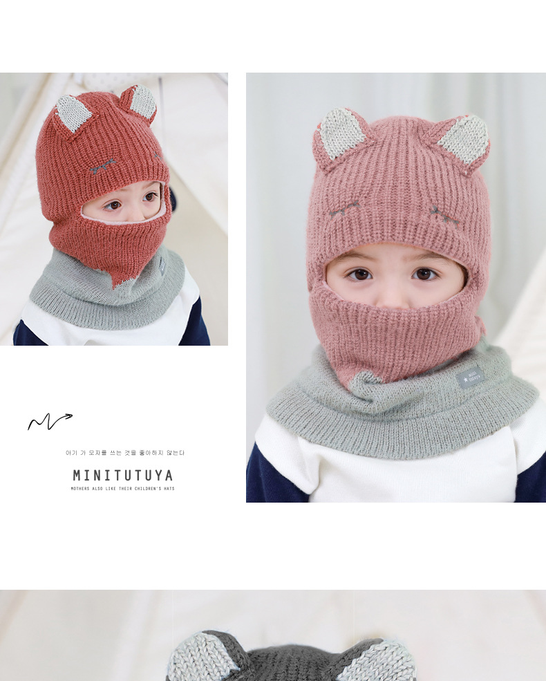 图涂丫儿童帽子秋冬季护耳针织帽男女围脖一体加绒保暖连体帽