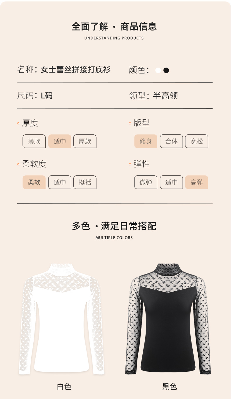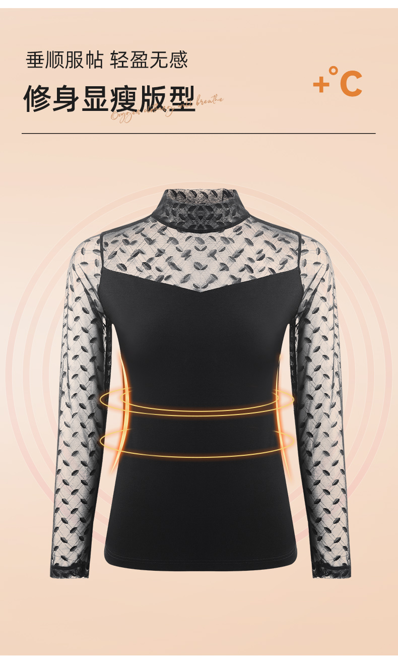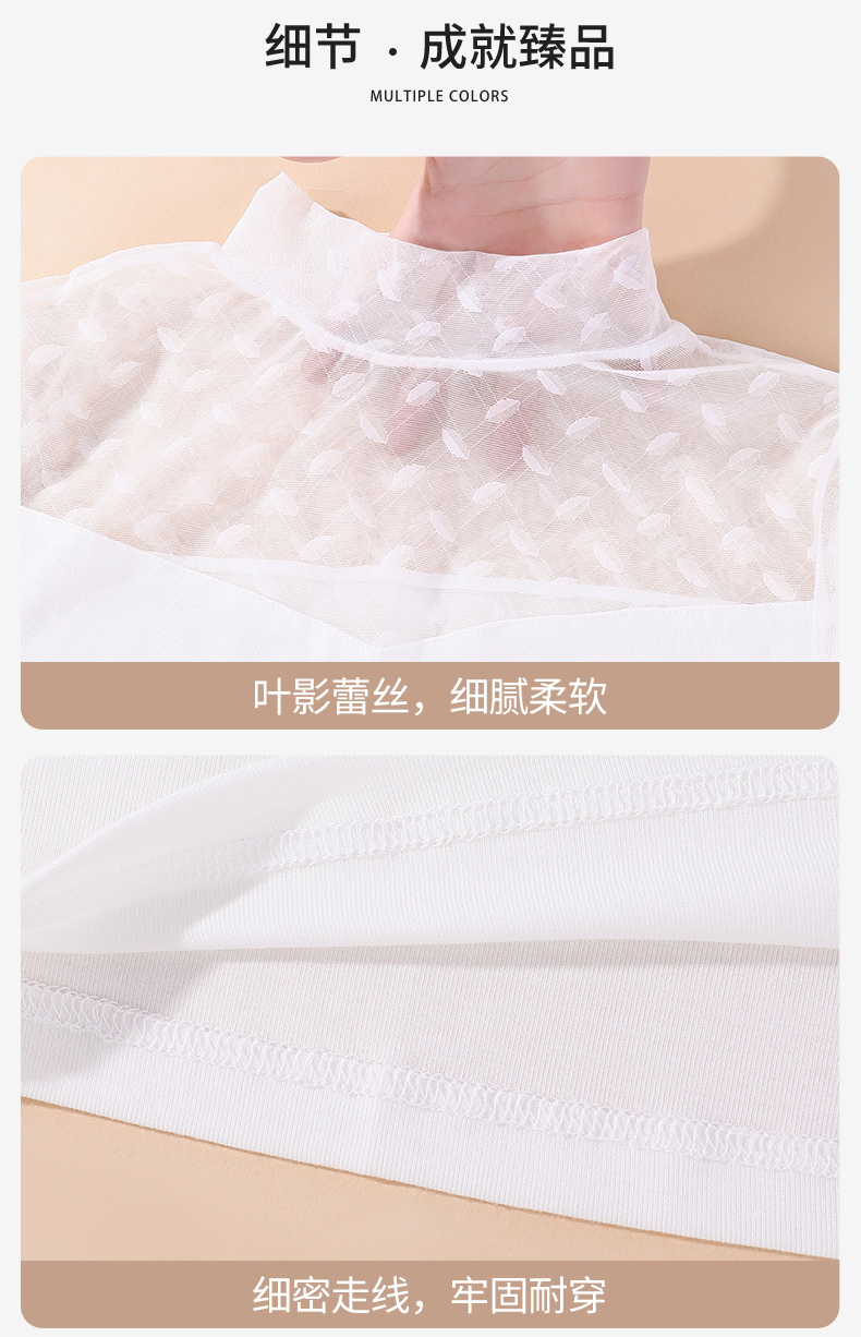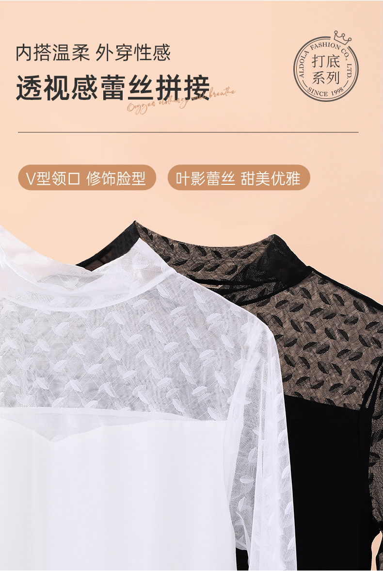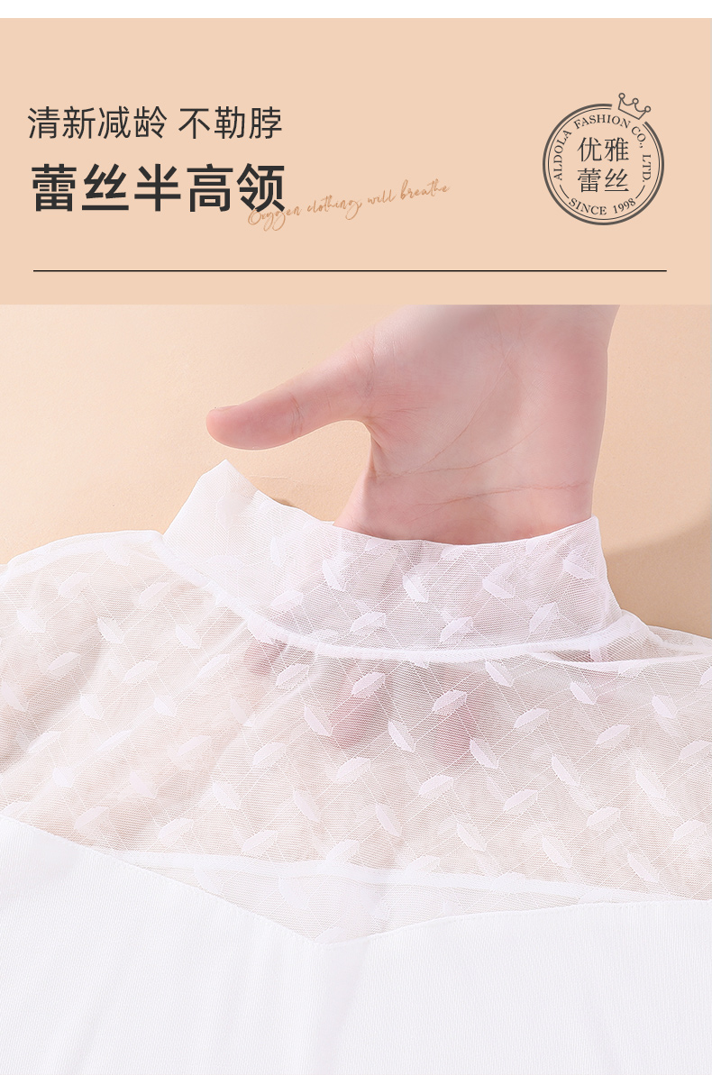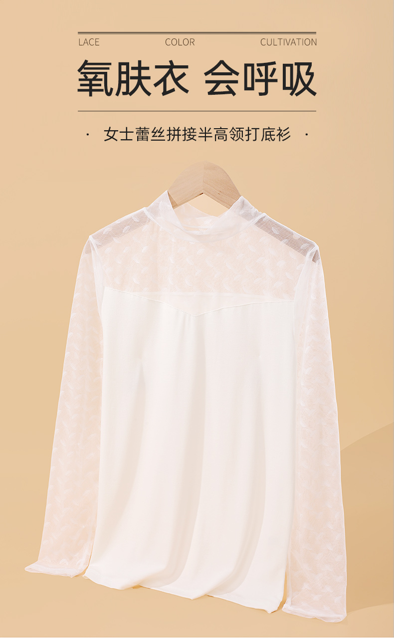 雅黛丽打底衫女中领蕾丝薄款可外穿上衣秋冬季2023新款白色长袖女