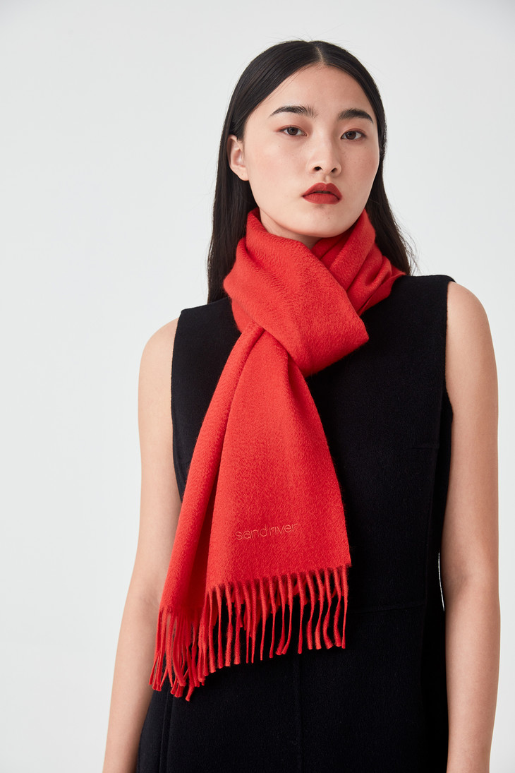 水波纹羊绒围巾 SJF92P800N