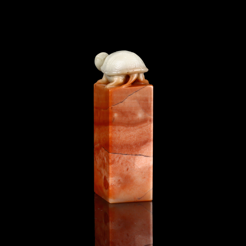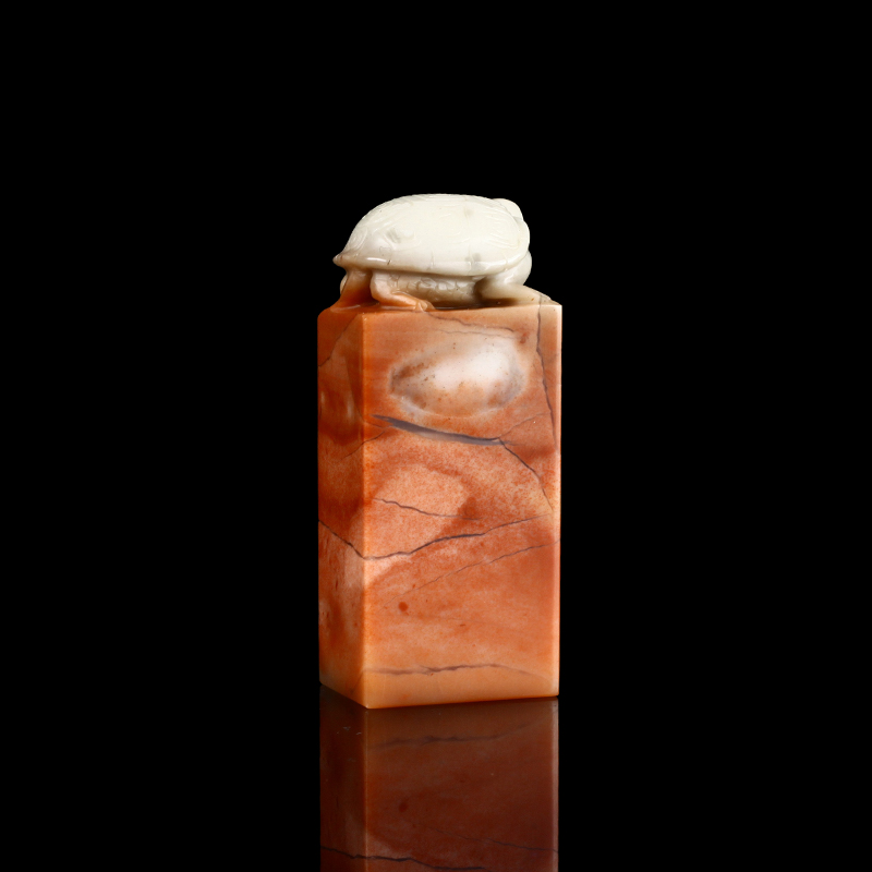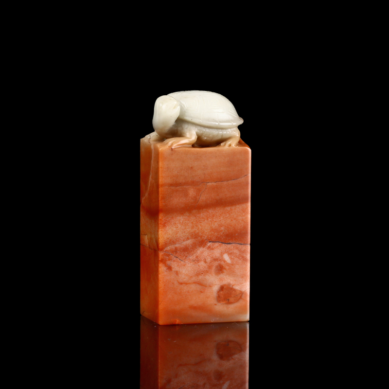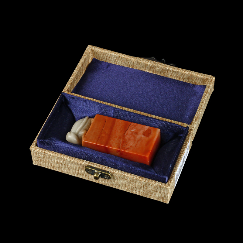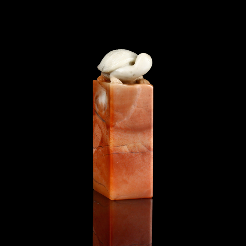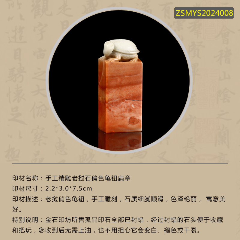 孤品2024008:手工精雕老挝石俏色龟钮扁章-2.2*3.0*7.5cm练字落款送礼佳品