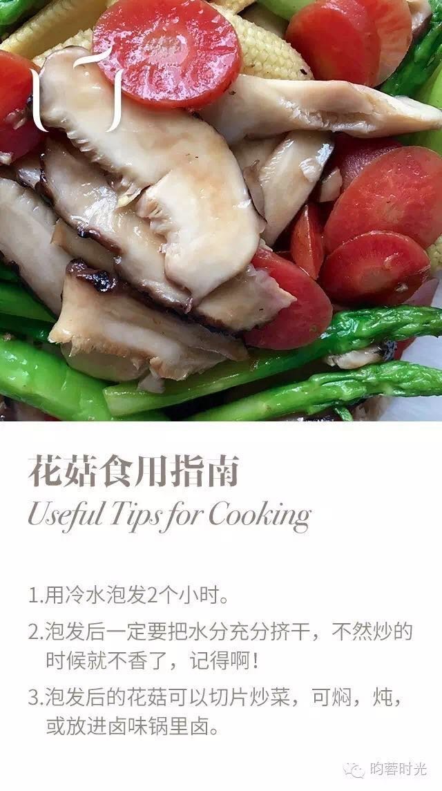 2、泡发后的花菇可以切片炒菜,可焖,炖,或放进卤味锅里卤。但是记得,一定要挤干水分再烹饪,否则会影响花菇口感,不香也不脆了,要记得啊!