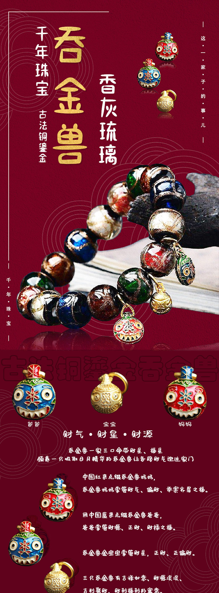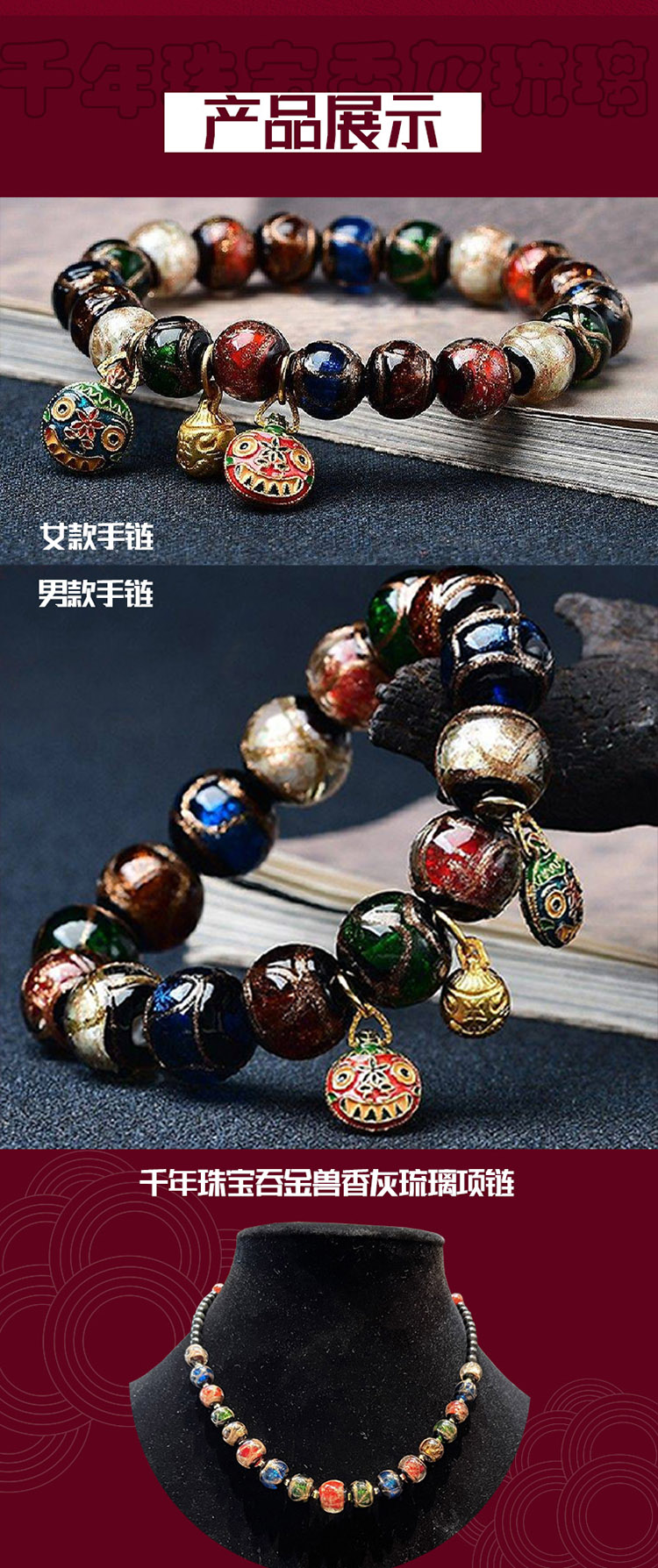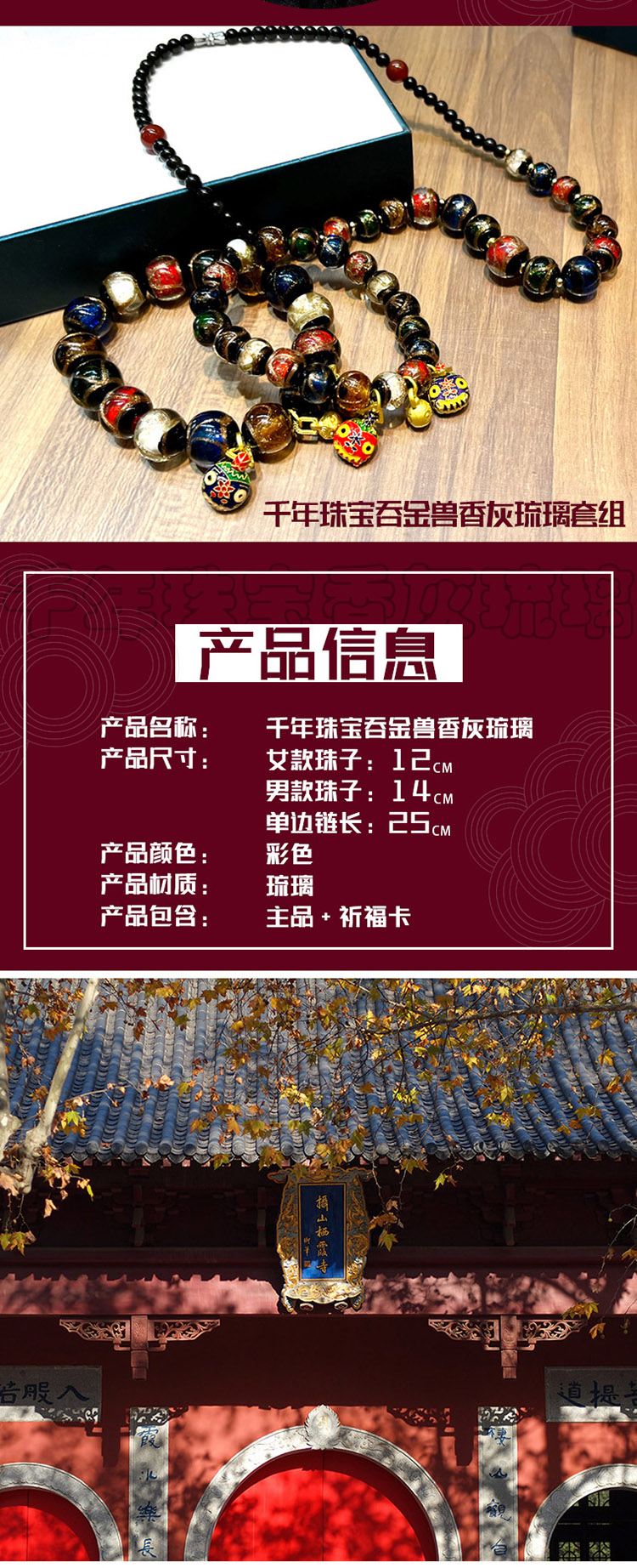 【千年珠宝和栖霞寺联名手串 金陵古法技艺而成】千年珠宝联名栖霞寺吞金兽香灰琉璃手串 珠子圆润饱满 触手温润 款式新颖 时尚百搭