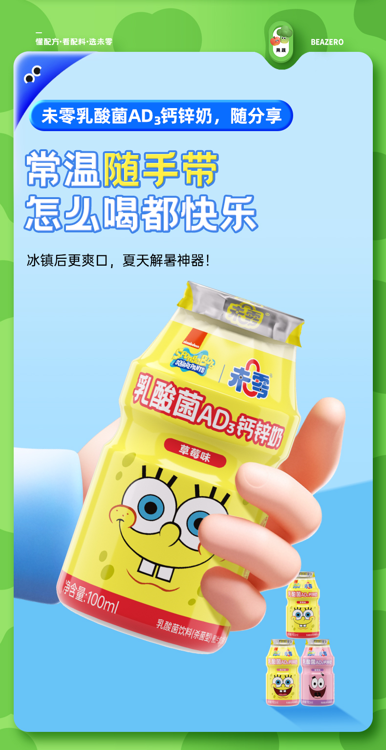 未零乳酸菌AD钙锌奶 海绵宝宝儿童牛奶饮料AD钙营养健康饮品