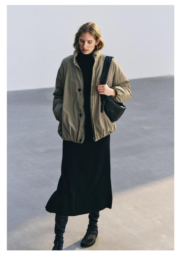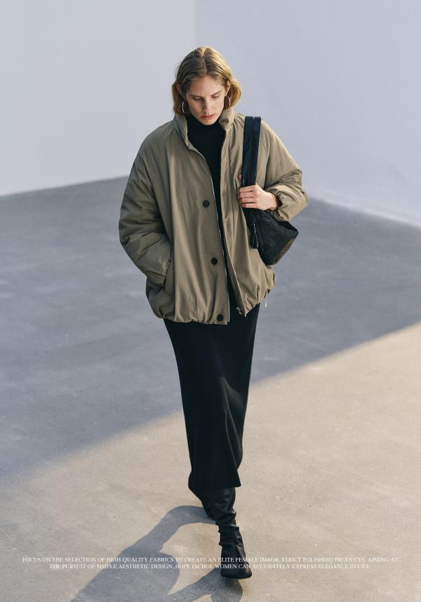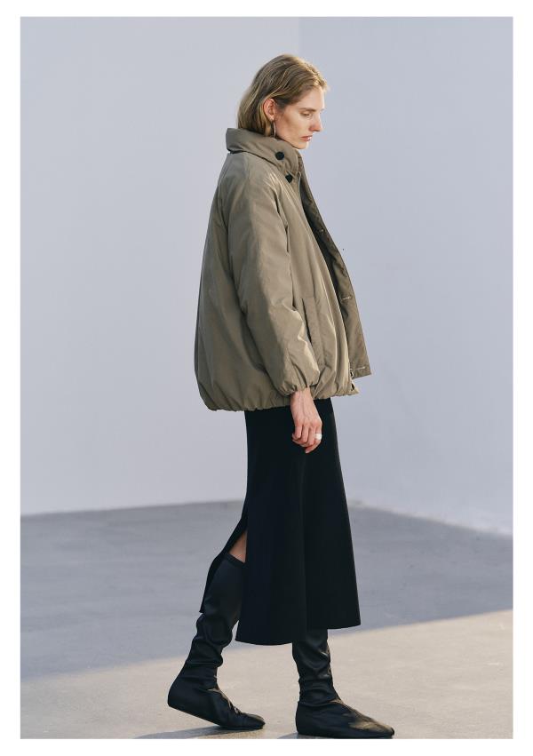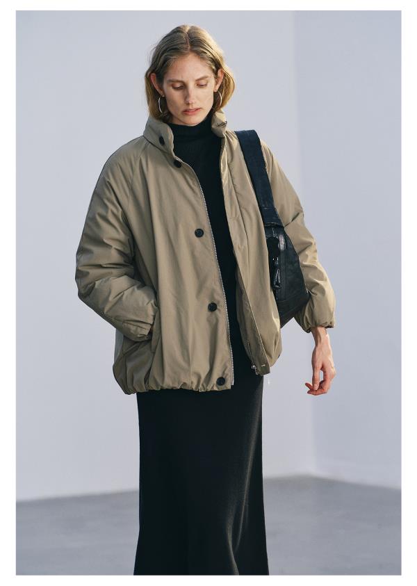 棉仓3671515008-灰绿色小立领95鹅绒服