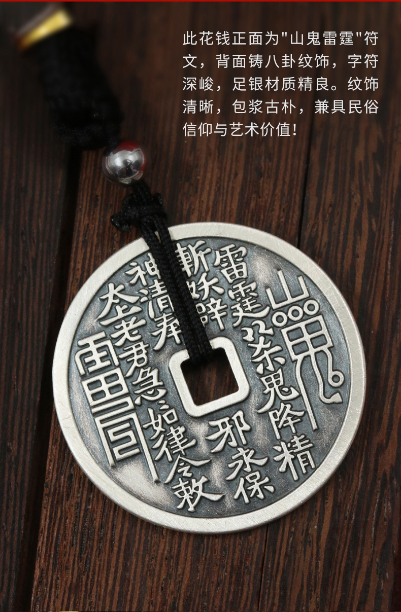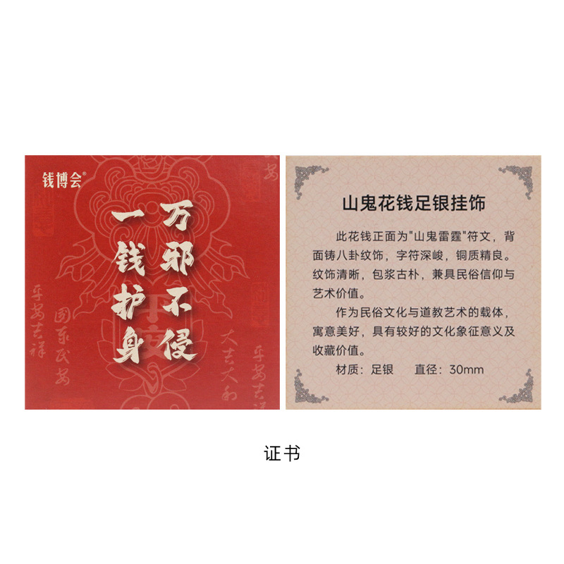 【钱博会出品】山鬼花钱足银八卦钱·方孔钱送挂绳·含鉴定证书收藏证书·足银999
