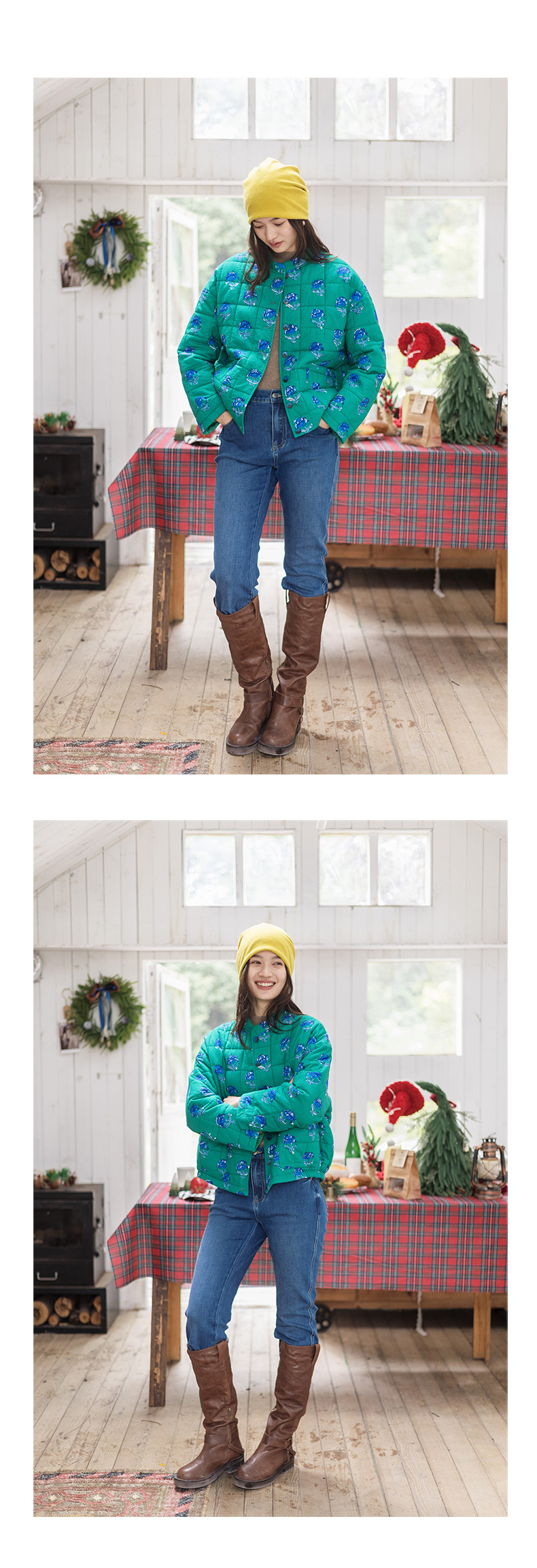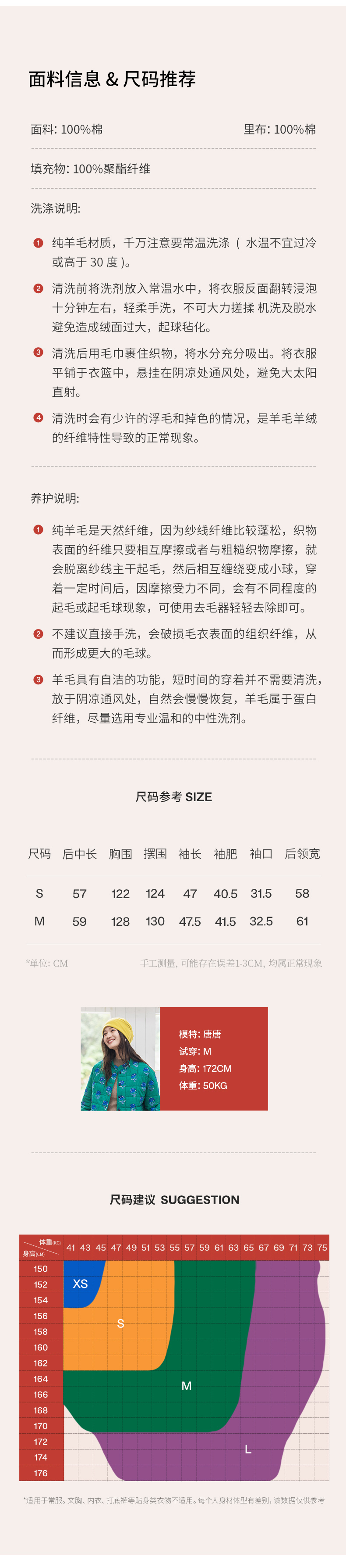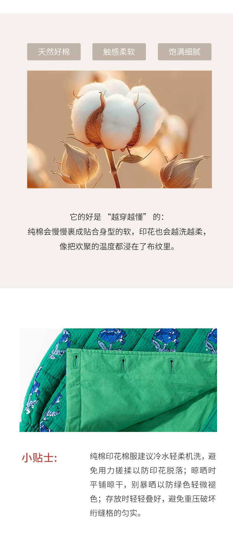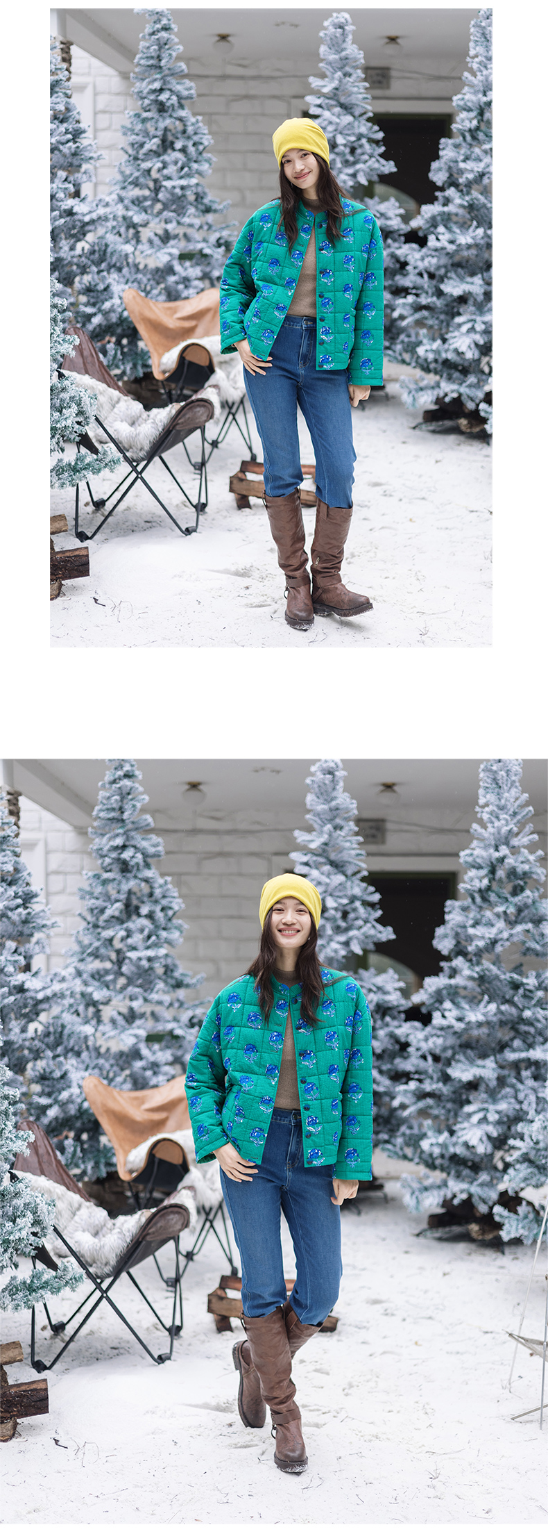 特绽放853朵/暖绿印花方格短棉服·全棉加厚保暖显高短款圆领棉衣