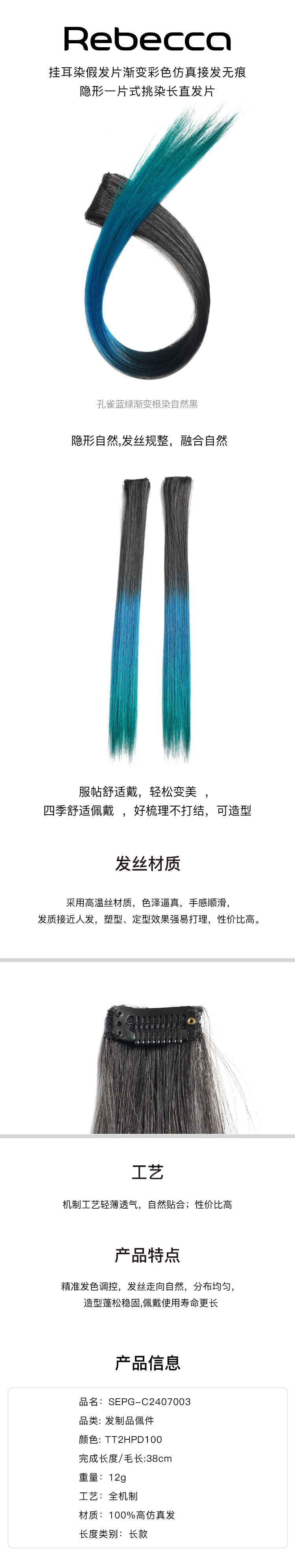挂耳染假发片渐变彩色仿真接发无痕隐形一片式挑染长直发片