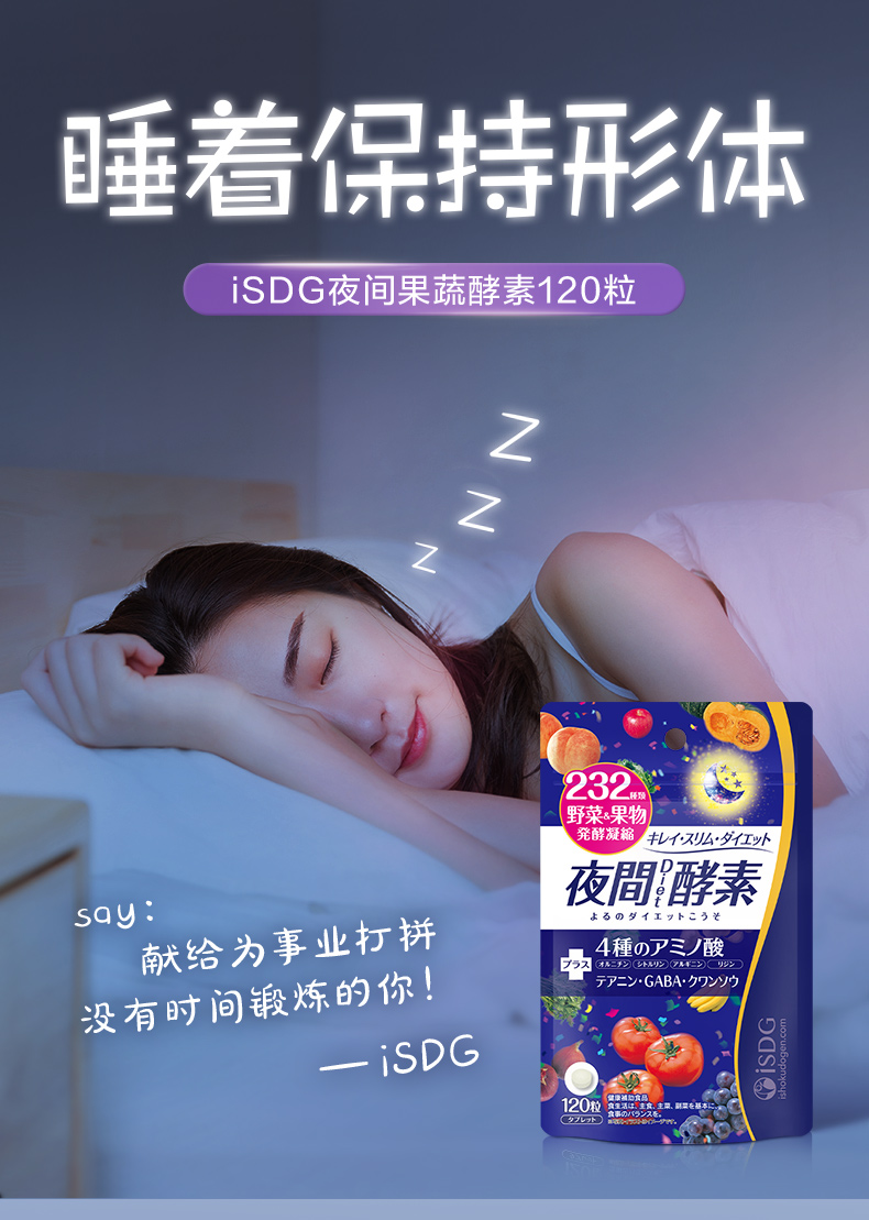 【品牌直营】ISDG日本进口232种果蔬酵素夜间酵素水果植物孝素非粉果冻120粒 2028-03-17到期