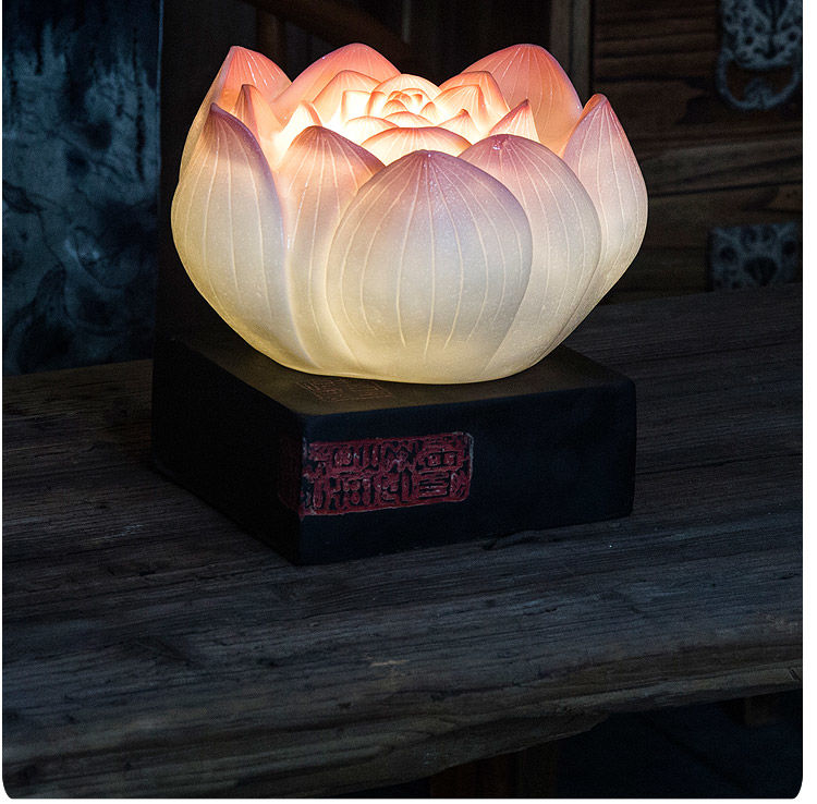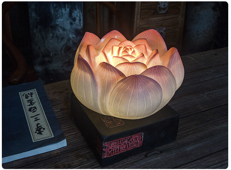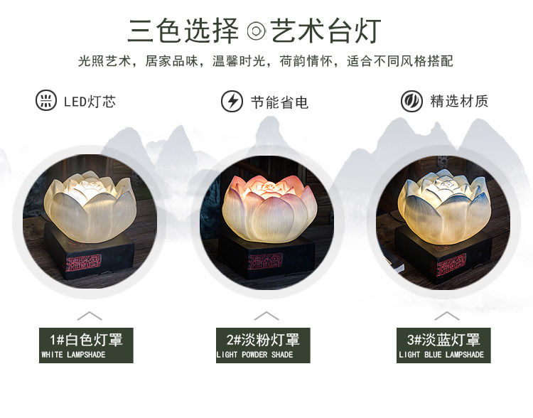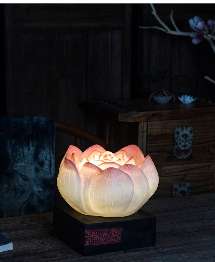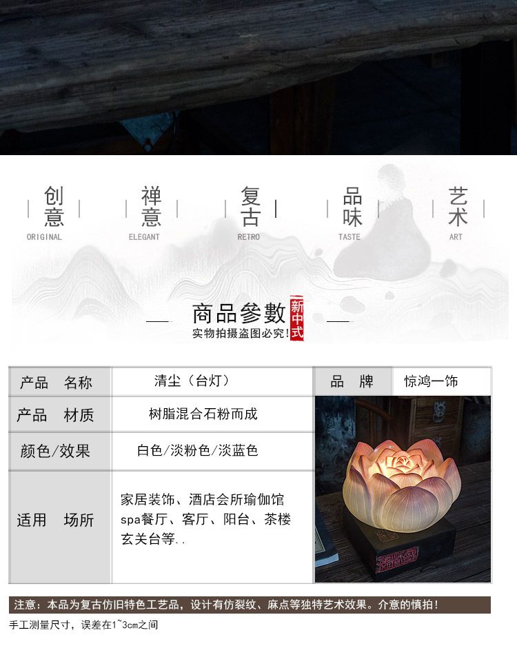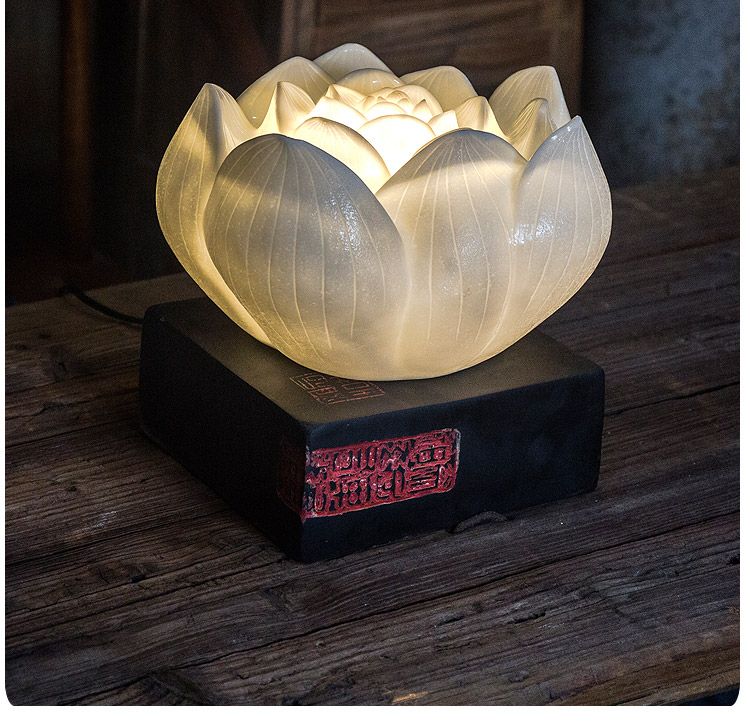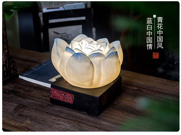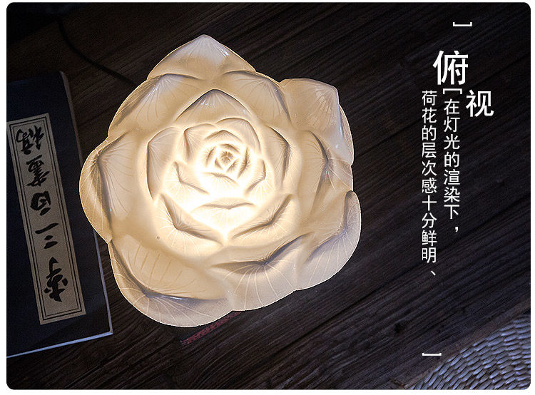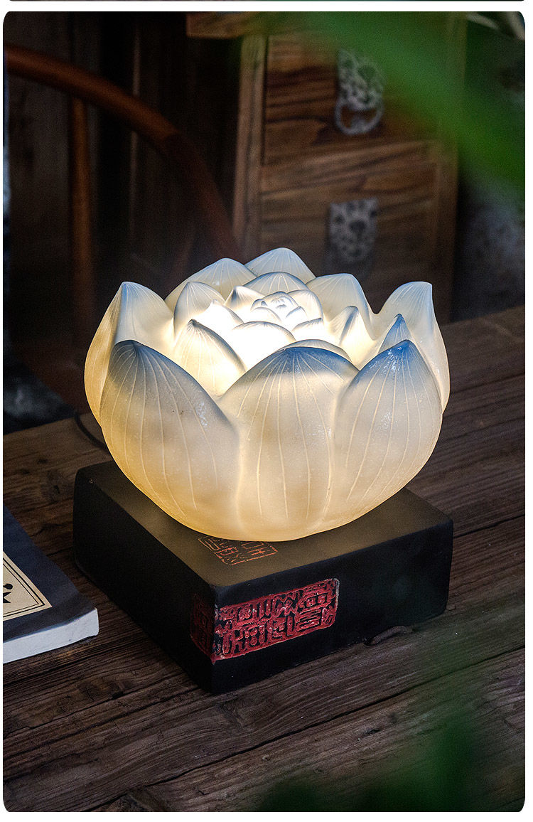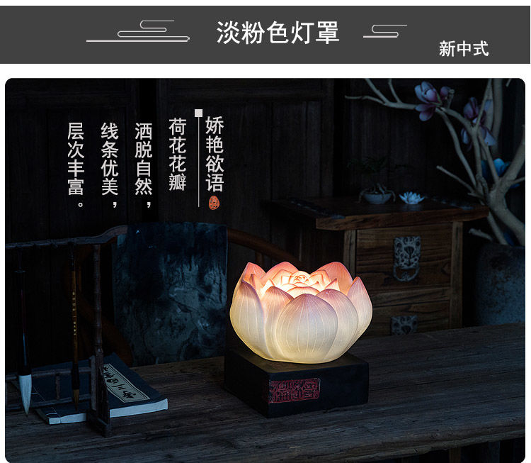 现代中式禅意网红民宿装饰卧室荷花仿古古典创意古风暖光莲花台灯