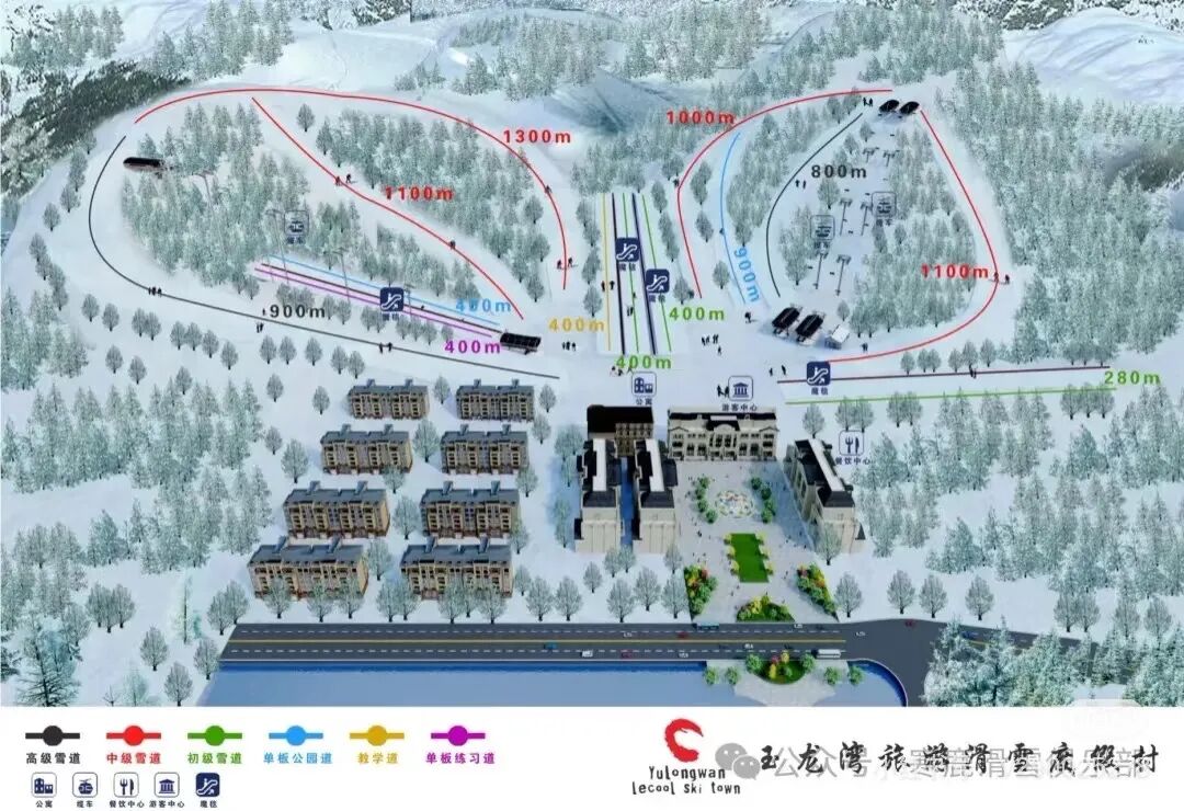 2️⃣地形丰富:雪场滑行区呈 “树叶型” 布局。