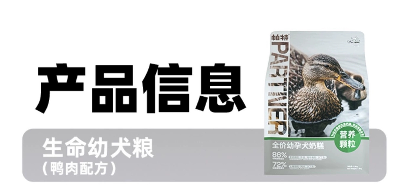 帕特狗粮 生命系列火鸡鸭肉梨奶糕成幼犬冻干粮1.8kg-8kg