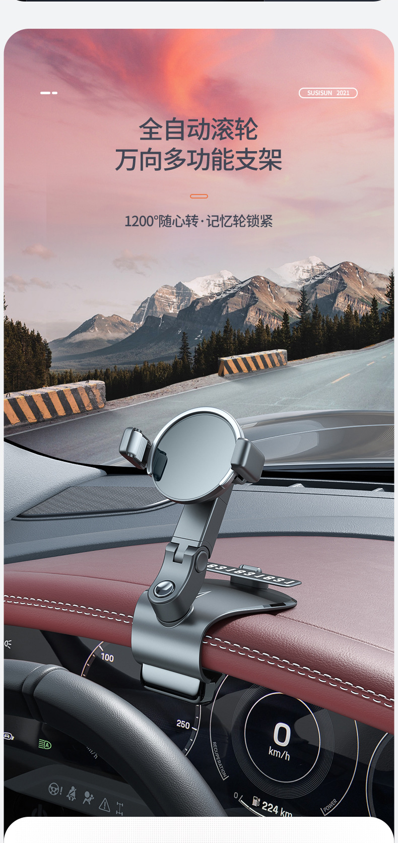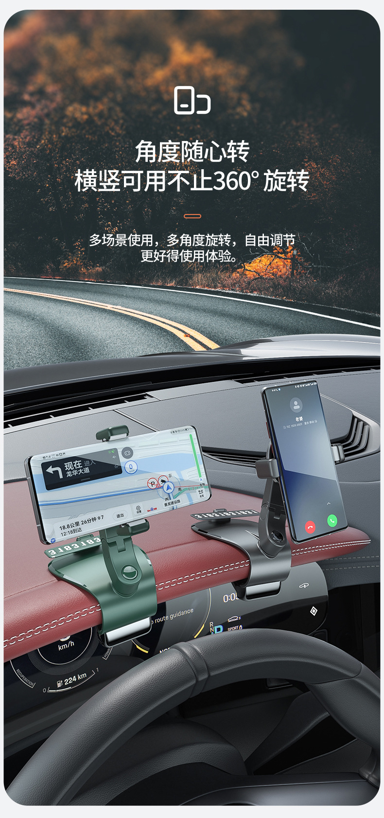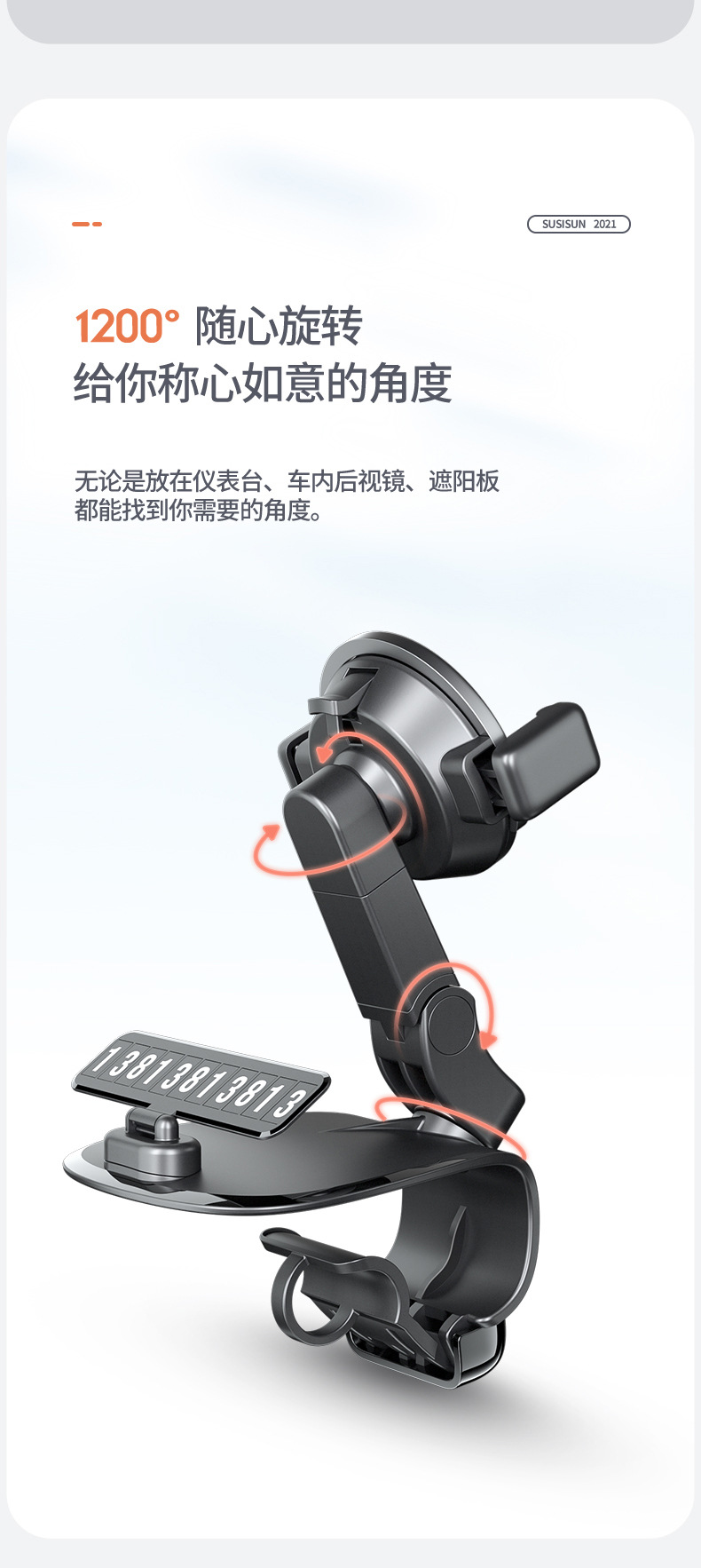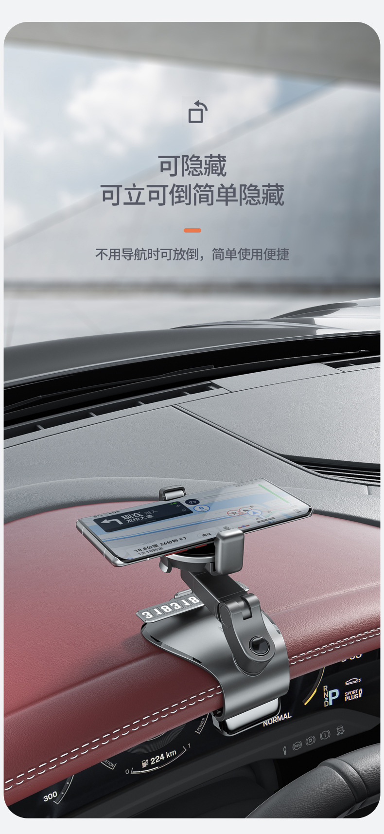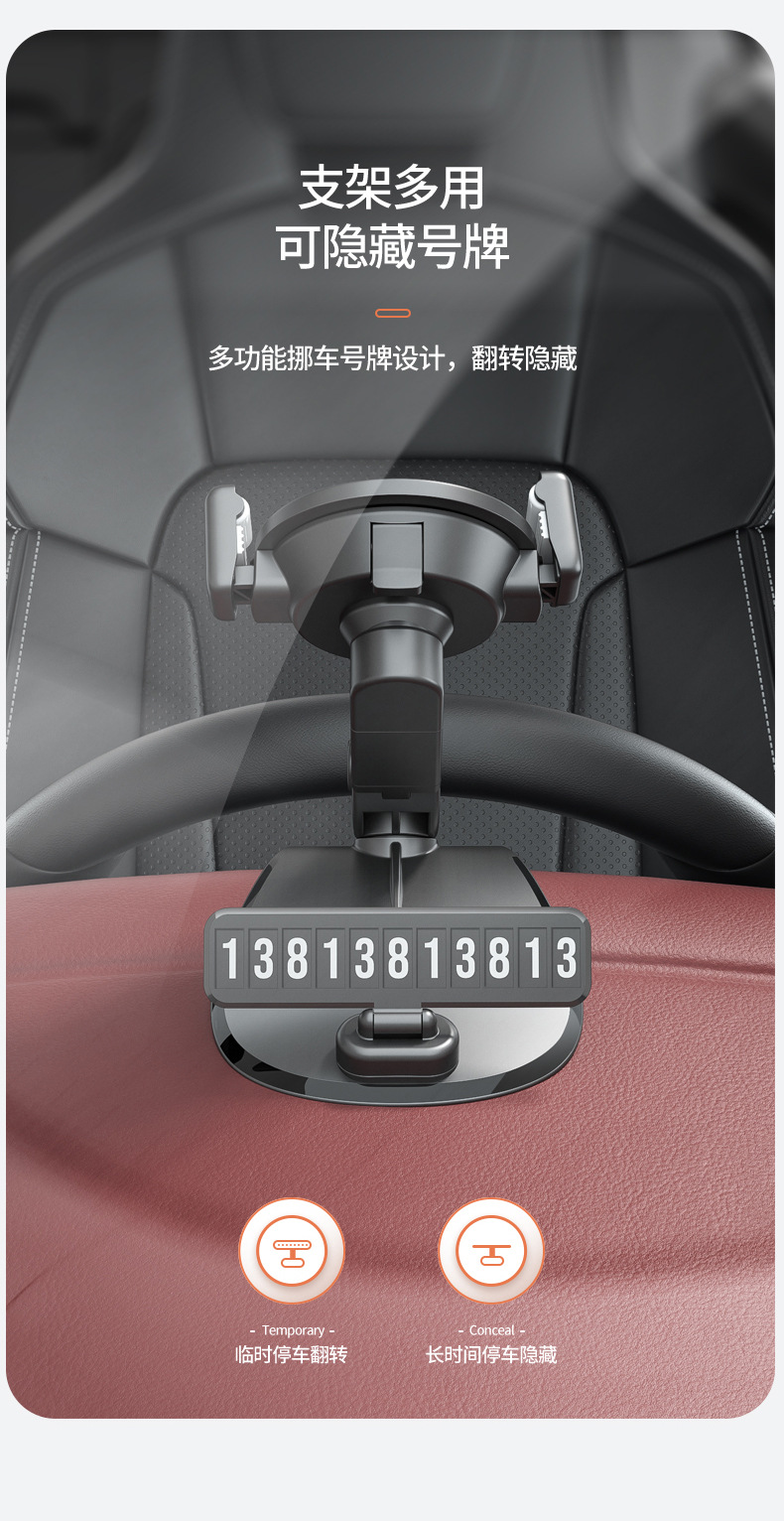 汽车导航支架不挡视线360度旋转 带隐藏停车牌