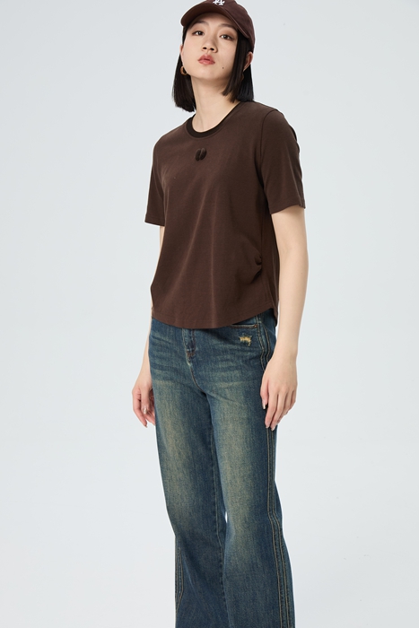 【爆款】水淼2025秋新款休闲气质弹力百搭丝绒领T恤1379