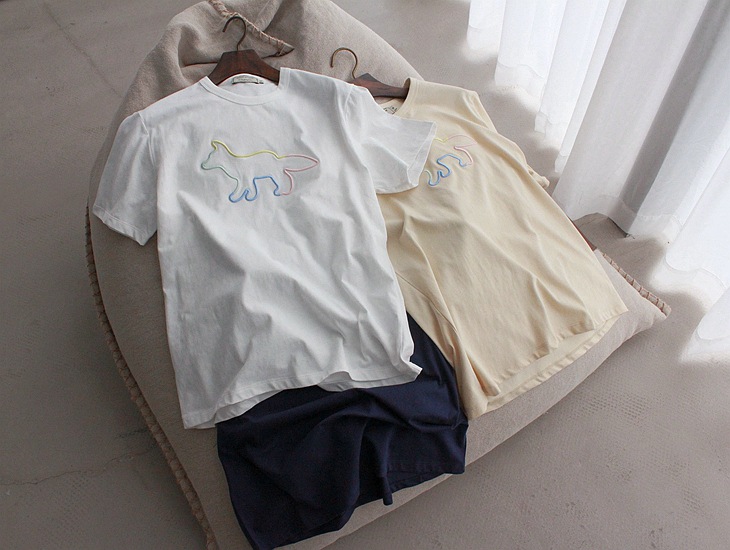 Maison Kits**e日法混血潮品!2025 小狐狸彩线勾勒刺绣 短袖T恤 男女款!