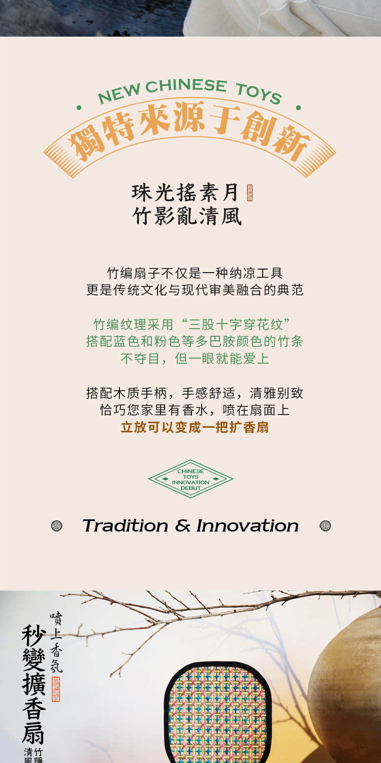 自然造物竹编扇子手工diy材料扩香器中式古风便携原创设计感礼物