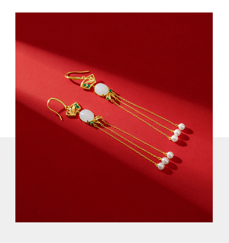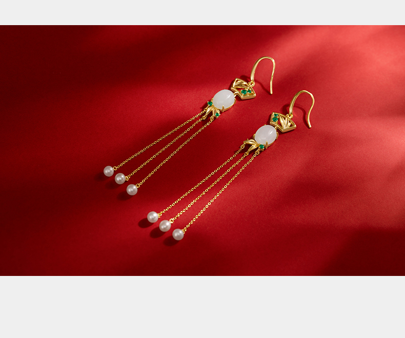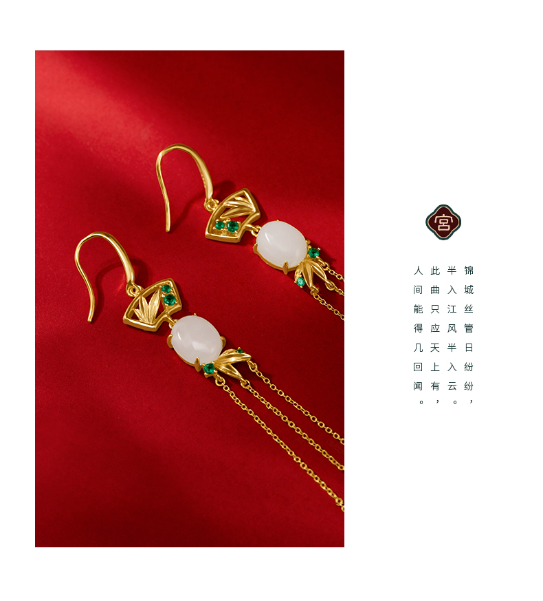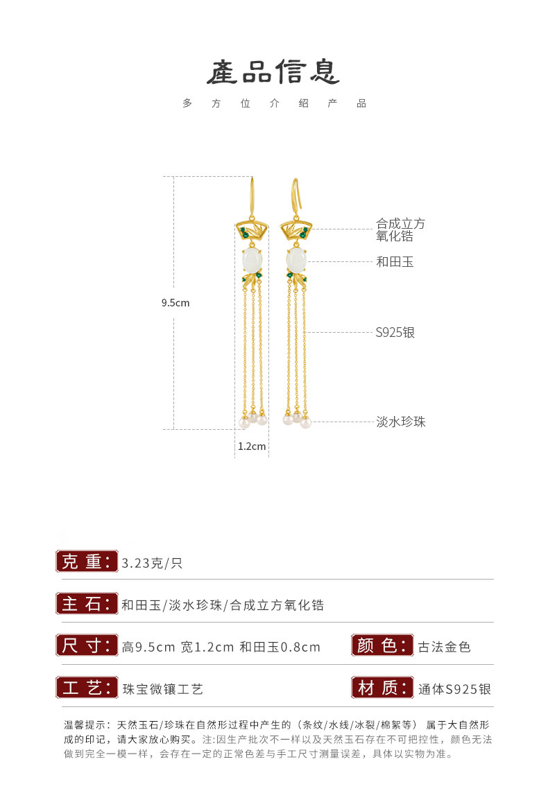 【秒杀】宫里的世界 玉人罗扇系列 耳钉 微微微瑕 无证书 无包装