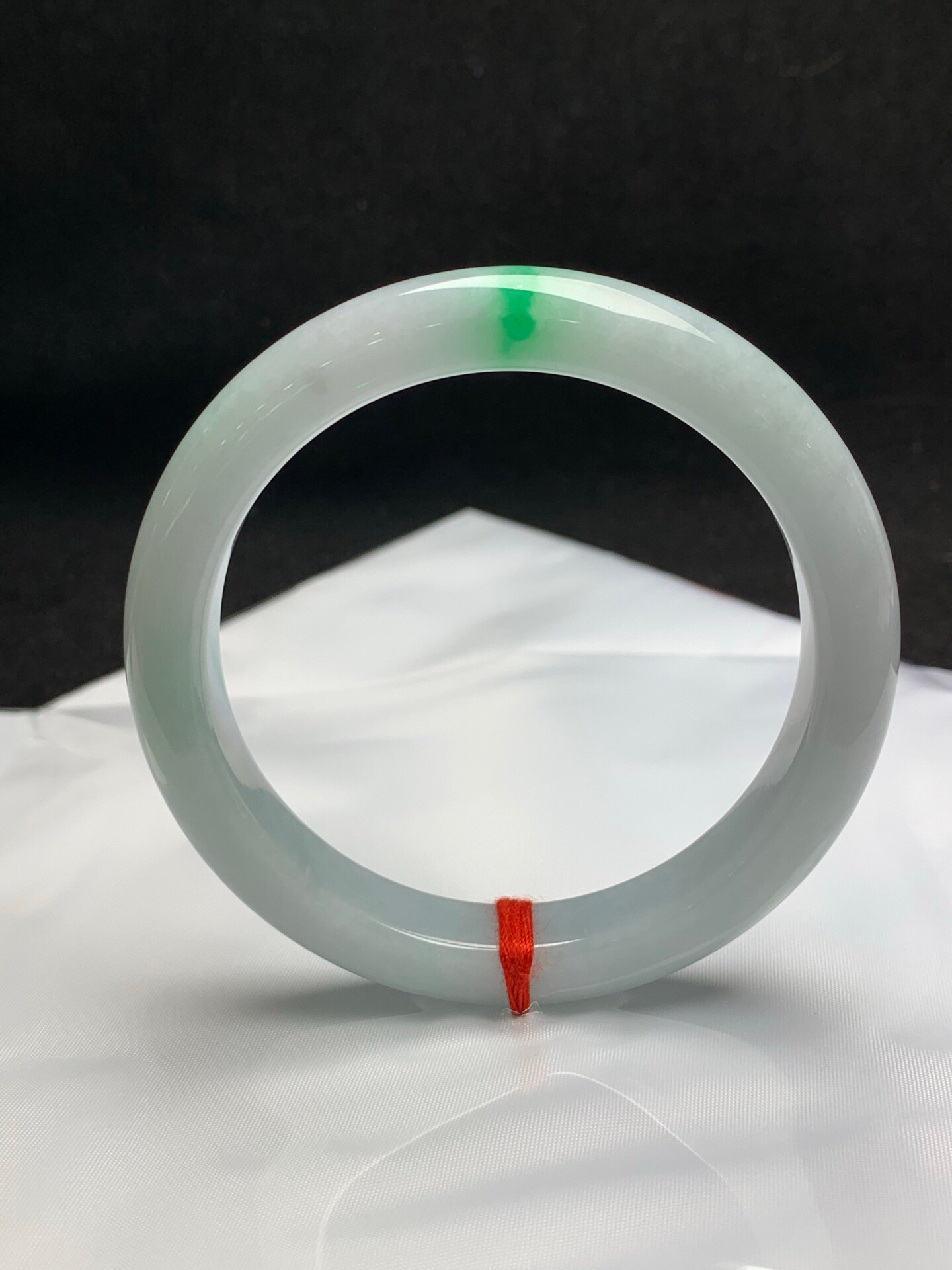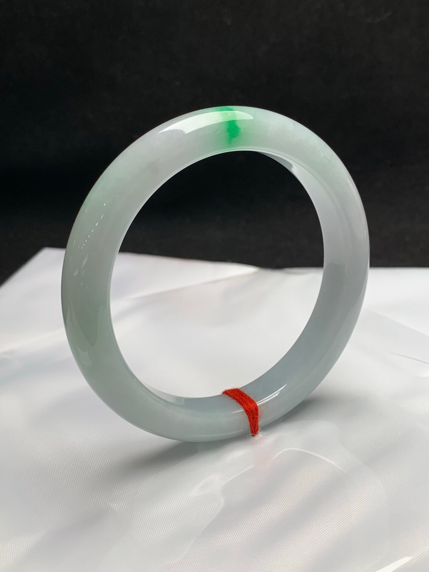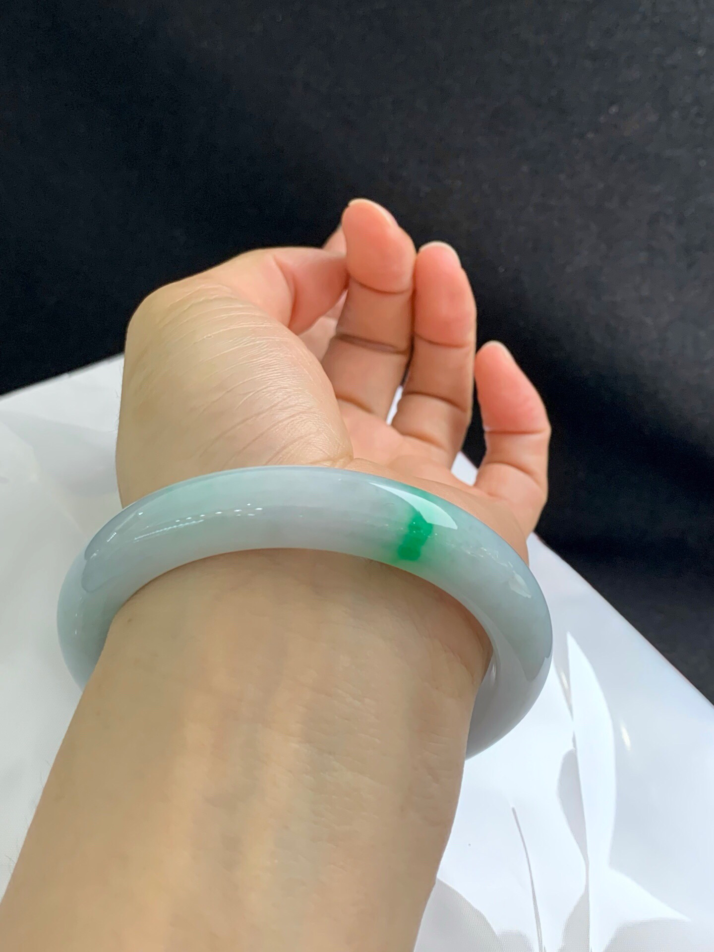 620682,60.9圈口,飘绿正圈平安镯,淡底色飘阳绿,飘色辣,大圈口,细腻完美,尺寸:60.9-11.5-9.3,超值价💰15800 #优石客珠宝#香玉荟萃