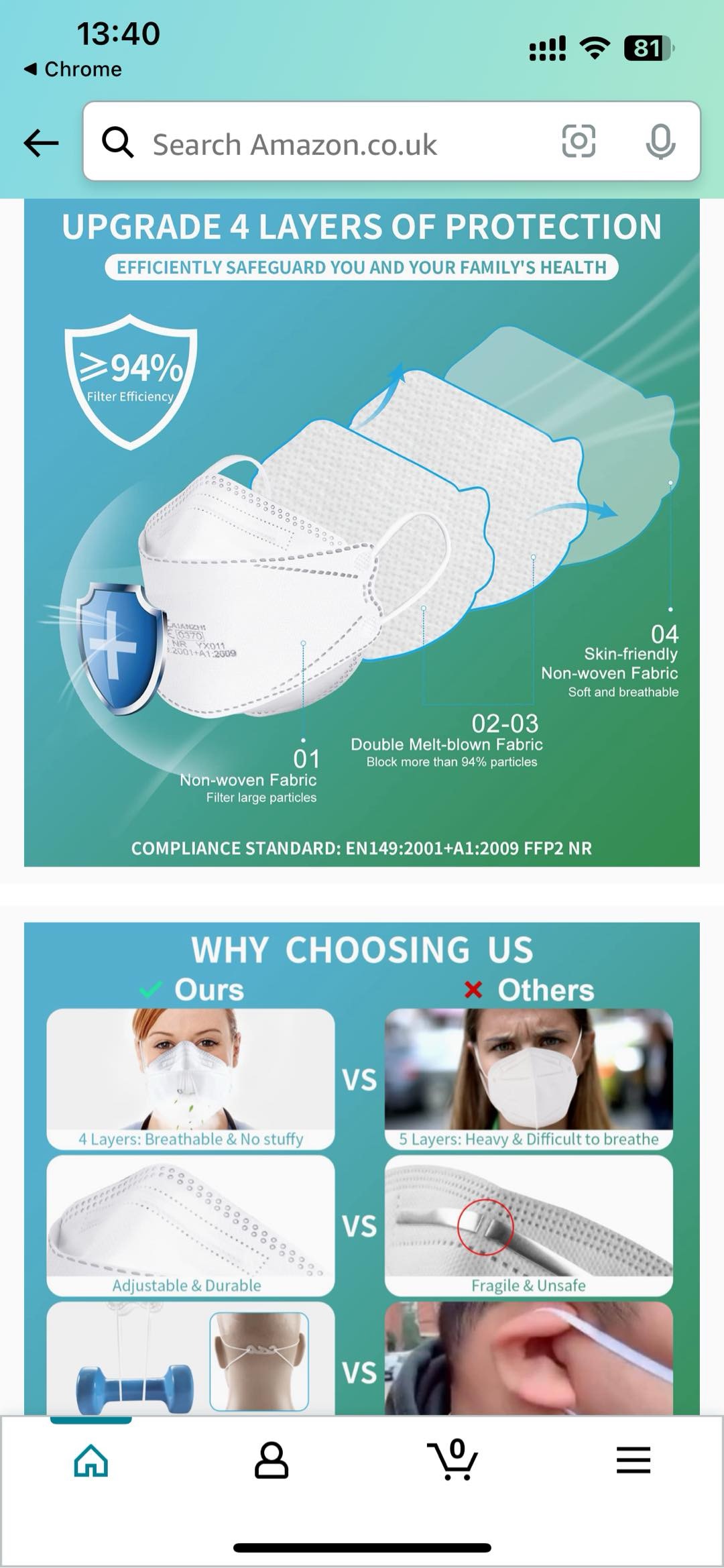 60支独立包装 符合欧洲标准】我们的FFP2口罩符合欧洲标准FFP2,这些防护口罩已通过专业检查合格。该口罩的过滤效率超过94%,可以放心使用。
