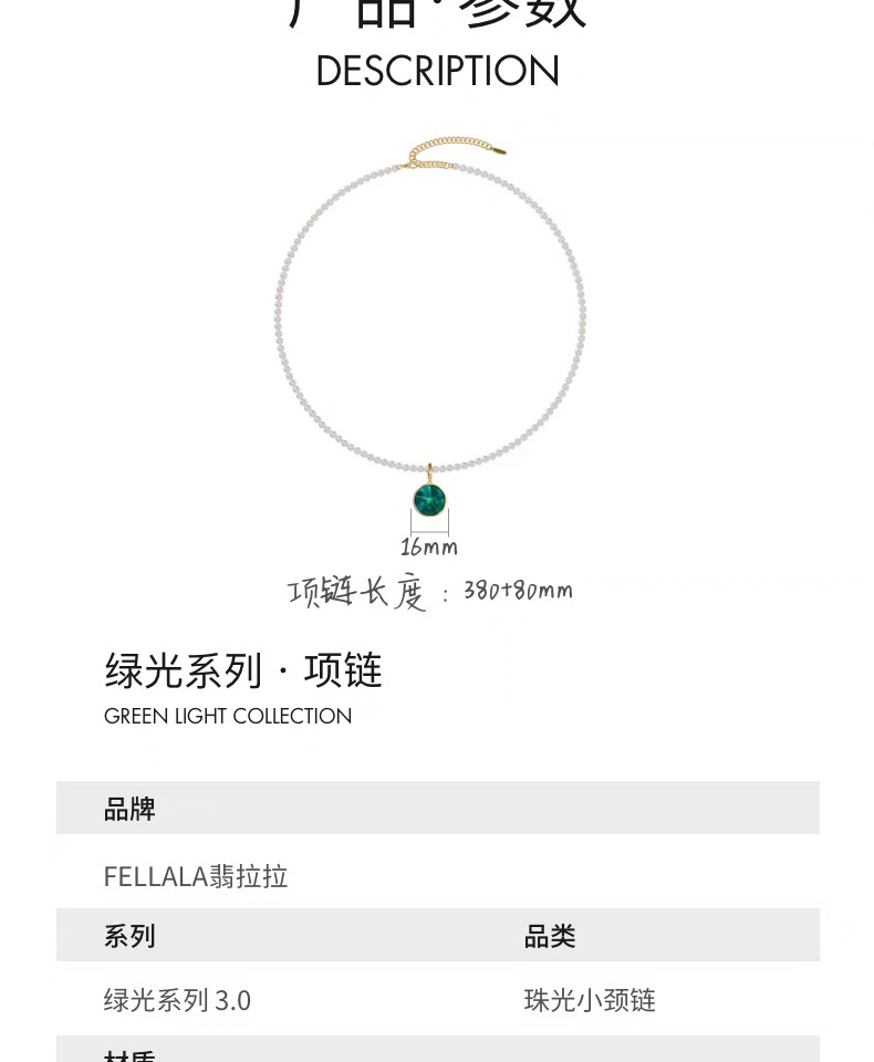 「新品」2楼Fellala/翡拉拉「绿光3.0」系列原创设计经典项链潮颈链货号925145201吊牌价969现价872