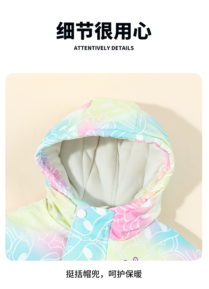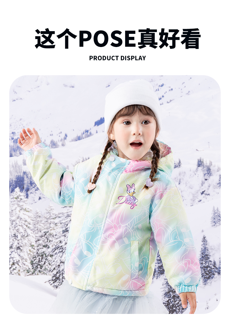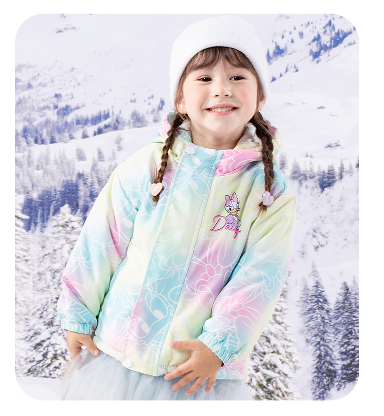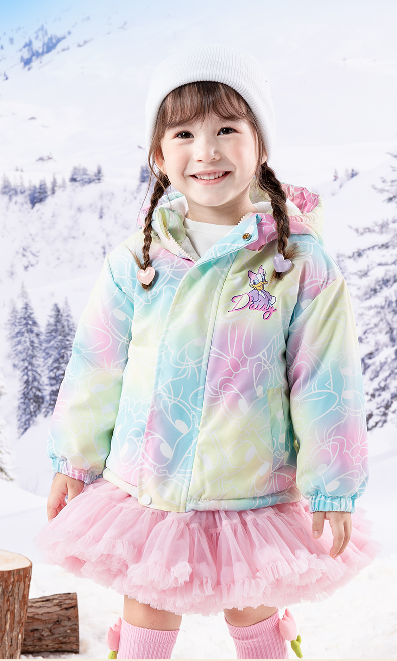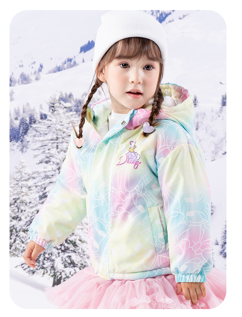 迪士尼童装女童黛丝可爱洋气棉服2024冬季新款夹棉保暖连帽外套ZD4DS013