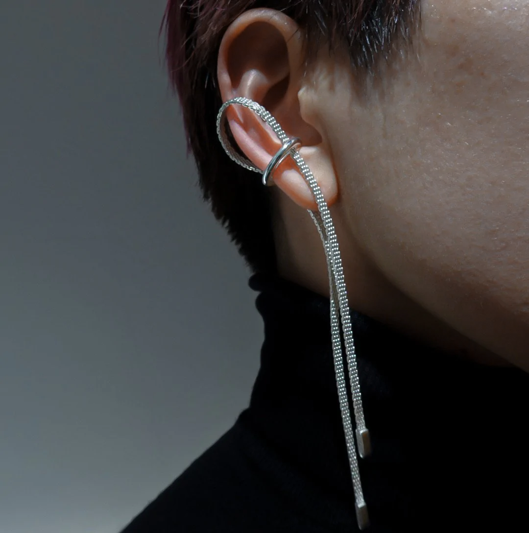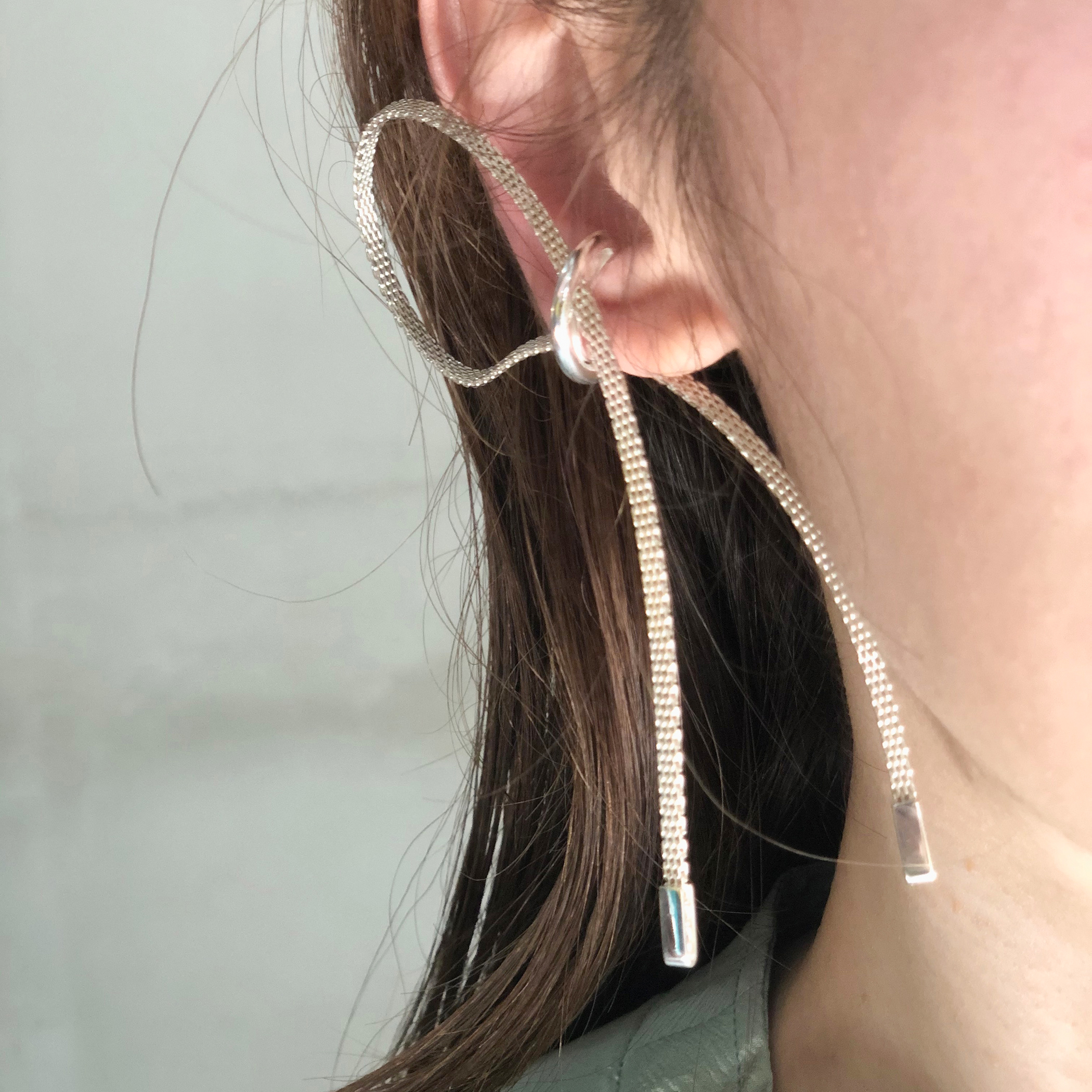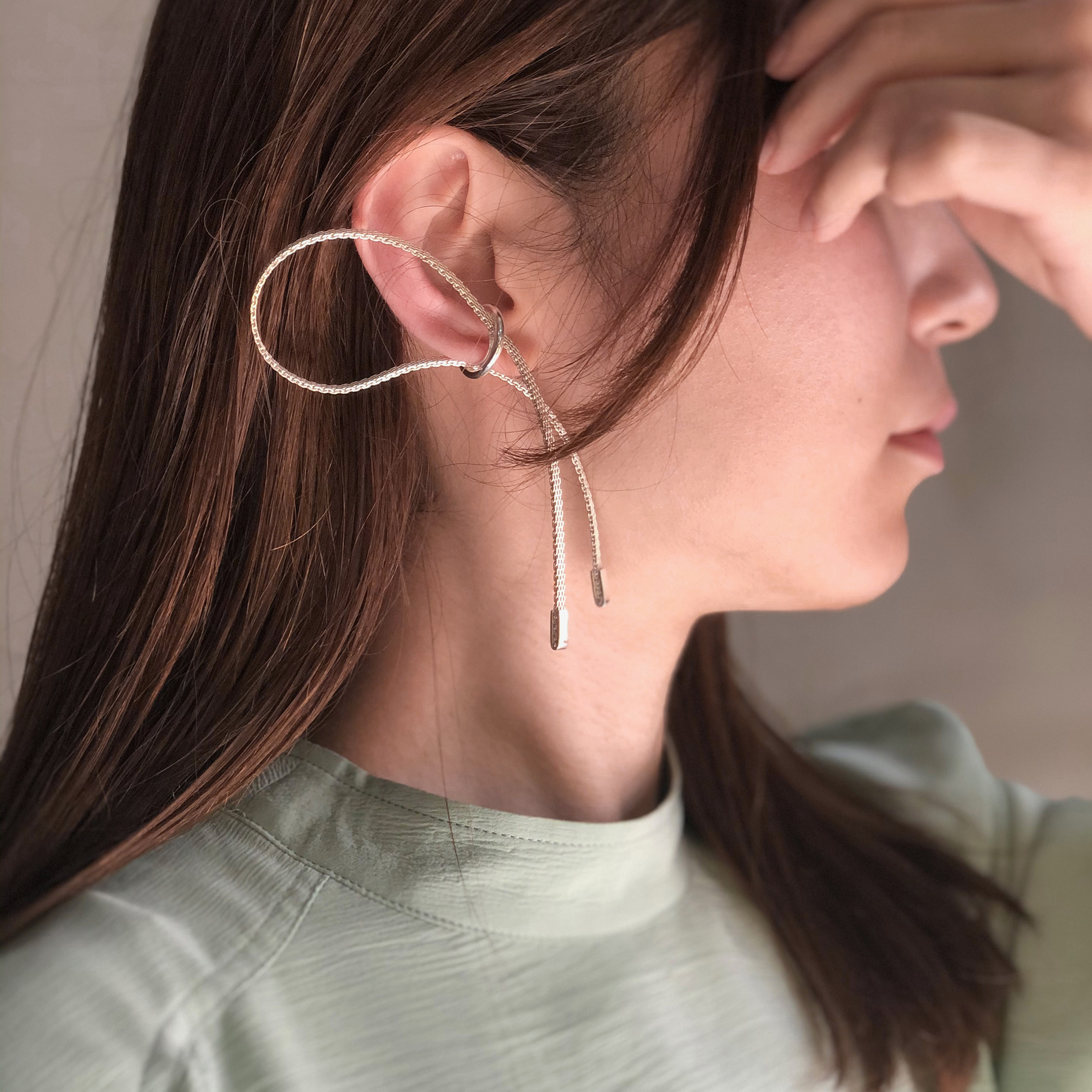 北京仓|Rathel&Wolf-Tamika-银色 双垂链 耳廓夹(单只)[英国设计师]